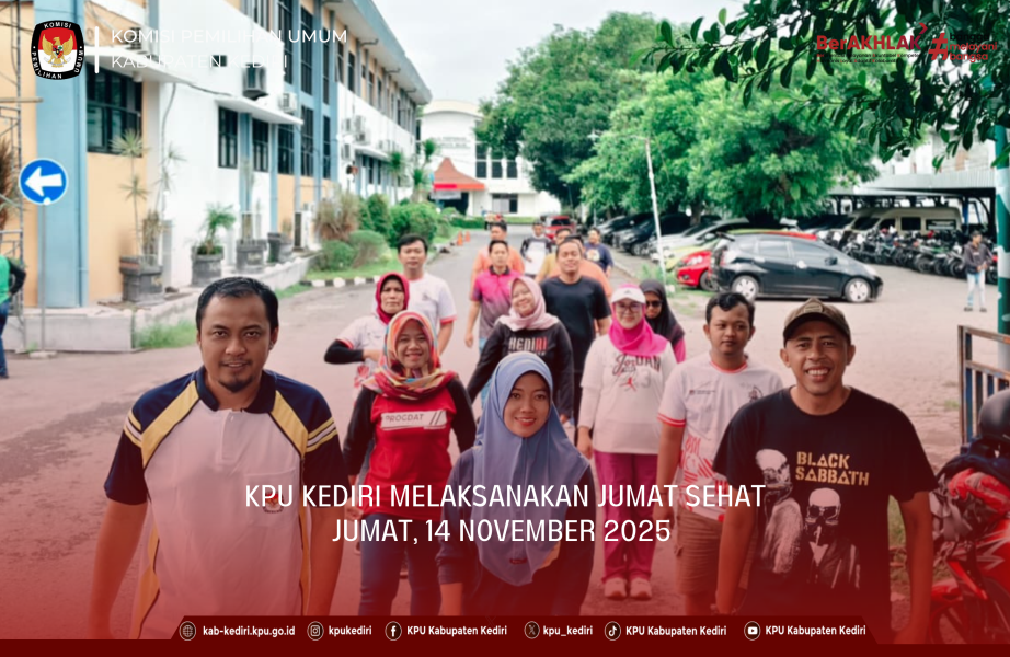 Kediri, kab-kediri.kpu.go.id - Jumat (14/11), pukul 07.30 WIB, KPU Kabupaten Kediri menggelar kegiatan Jumat Sehat sebagai bagian dari upaya menjaga kebugaran tubuh, meningkatkan kesehatan jasmani, serta mempererat kebersamaan dan kekompakan antar pegawai di lingkungan KPU Kabupaten Kediri.