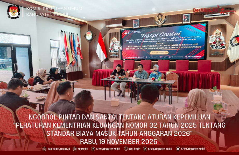 Sementara itu, Sekretaris KPU Kabupaten Kediri Randy Agatha Sakaira memfokuskan materinya pada pentingnya memahami Standar Biaya Masukan (SBM), mekanisme perjalanan dinas, serta batas-batas kebijakan yang dapat diambil oleh pengelola keuangan.