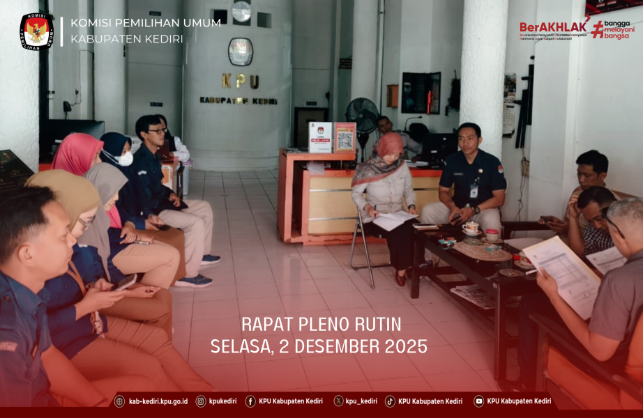 Kediri, kab-kediri.kpu.go.id - Selasa (2/12), Komisi Pemilihan Umum (KPU) Kabupaten Kediri melaksanakan Rapat Pleno Rutin mingguan yang berlangsung di Aula KPU Kabupaten Kediri.