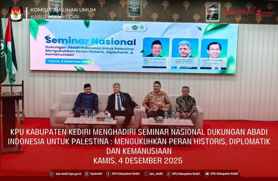 KPU Kabupaten Kediri Menghadiri Seminar Nasional bertema Dukungan Abadi Indonesia untuk Palestina: Mengukuhkan Peran Historis, Diplomatik, dan Kemanusiaan
