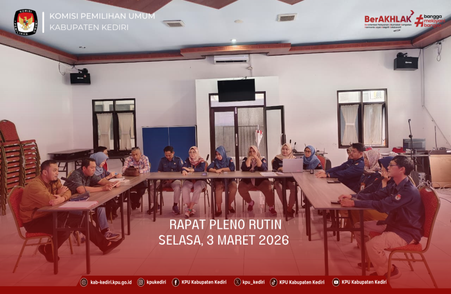 Kediri, kab-kediri.kpu.go.id - Senin (3/3), Komisi Pemilihan Umum (KPU) Kabupaten Kediri menggelar Rapat Pleno Rutin Mingguan yang bertempat di Kantor KPU Kabupaten Kediri.