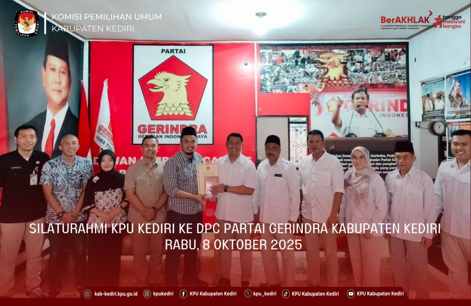 Pada kesempatan ini, KPU Kabupaten Kediri berkunjung ke kantor DPC Partai Gerindra Kabupaten Kediri. Kegiatan dihadiri oleh Ketua, Anggota, Sekretaris serta Kasubbag TEKHUM dan Kasubbag PARMAS dan SDM KPU Kabupaten Kediri. Dari pihak Gerindra, hadir Ketua DPC beserta jajaran pengurus harian.