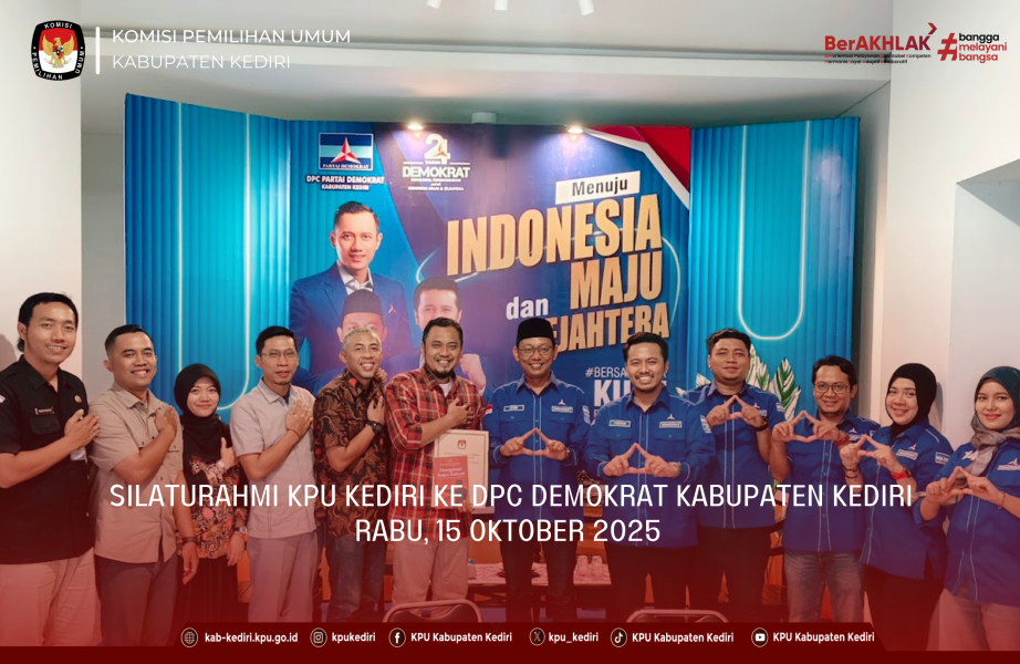 Pada kesempatan ini, KPU Kabupaten Kediri berkunjung ke kantor DPC Partai Demokrat Kabupaten Kediri. Kegiatan dihadiri oleh Ketua, Anggota, Sekretaris serta Kasubbag TEKHUM dan Kasubbag PARMAS dan SDM KPU Kabupaten Kediri. Dari pihak Demokrat, hadir Ketua DPC beserta jajaran pengurus harian.