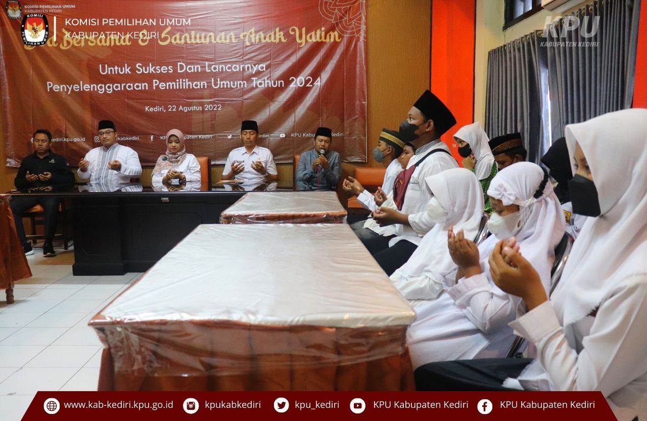 Kediri, kab-kediri.kpu.go.id - Senin (22/8/2022) KPU Kabupaten Kediri melaksanakan kegiatan Doa Bersama dan Santunan Anak Yatim dalam Rangka Sukses dan Lancarnya Penyelenggaraan Tahapan Pemilu Tahun 2024.