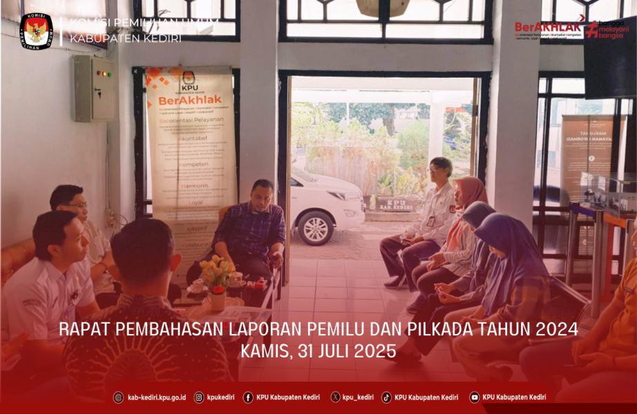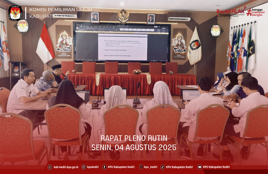 Kediri, kab-kediri.kpu.go.id - Senin (04/08), KPU Kabupaten Kediri menggelar rapat rutin yang dihadiri Ketua KPU Kabupaten Kediri Nanang Qosim, Sekretaris R. Randy Agatha Sakaira, serta seluruh kepala divisi. Dalam rapat tersebut, Nanang Qosim menyampaikan tindak lanjut surat dari Kesbangpol terkait persiapan Pilkada 2029, evaluasi pelaksanaan kegiatan, dan penguatan agenda kerja masing-masing divisi. Ia juga menekankan pentingnya pengarsipan master data pemilu dan pilkada secara rapi baik dalam bentuk hard copy maupun soft file, penyelesaian laporan Pemilu 2024, serta perencanaan audiensi dengan beberapa instansi pada bulan Agustus. Selain itu, dibahas rencana kegiatan internal seperti mini soccer dan lomba peringatan Hari Kemerdekaan RI. Divisi Teknis Penyelenggaraan yang dipimpin Irbabul Lubab melaporkan progres penyusunan laporan pemilu, termasuk peringkasan dokumen setebal 280 halaman menjadi versi ringkas dan infografis untuk efisiensi. Divisi ini juga mengagendakan audiensi dengan Kepala Kejaksaan Negeri yang baru serta Focus Group Discussion (FGD) bersama Bawaslu. Sementara itu, Divisi SDM dan Parmas yang diketuai Eka Septiawan F memaparkan agenda publikasi seperti podcast bersama organisasi masyarakat, dokumentasi apel dalam bentuk video pendek, serta pelaksanaan kegiatan olahraga dan lomba agustusan untuk internal KPU. Divisi Hukum dan Pengawasan yang diketuai Ninik Sunarmi melaporkan progres penyusunan Sistem Pengendalian Intern Pemerintah (SPIP) dan draf Standar Operasional Prosedur (SOP) Wisma yang segera dibagikan ke grup. Sementara itu, Ika Palupi menyampaikan perkembangan Pemutakhiran Data Pemilih Berkelanjutan (PDPB) yang masih menunggu tanggapan dari masyarakat. Rapat ini menegaskan komitmen seluruh jajaran KPU Kabupaten Kediri untuk memperkuat koordinasi, menjaga kelancaran persiapan Pilkada 2029, dan meningkatkan pelayanan kepada publik.(irf)