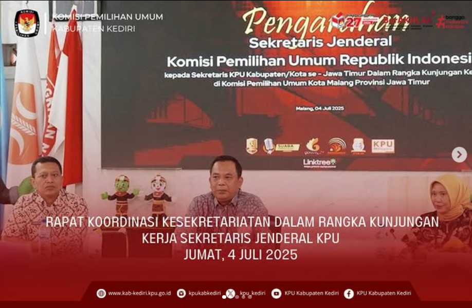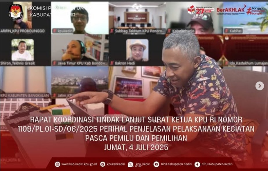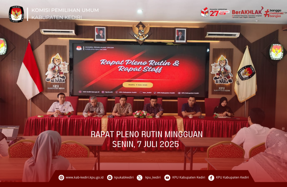 Kediri, kab-kediri.kpu.go.id - Senin (7/7) Kabupaten Kediri menggelar rapat pleno rutin yang dipimpin langsung oleh Ketua KPU Kabupaten Kediri, Nanang Qosim. Rapat inibertujuan untuk berbagi informasi, evaluasi, dan perencanaan kedepannya. Dalam pembukaannya, Nanang Qosim, menyoroti beberapa poin penting. Ia menekankan pentingnya progres pelaksanaan kegiatan, laporan evaluasi PDPB, pemutakhiran data partai politik (parpol), serta perkembangan sosialisasi dan penerbitan buku. "Performa kelembagaan kita akan nampak kalau ada aktivitas kegiatan," ujar Nanang, mengingatkan seluruh jajaran untuk menjaga ritme kerja dan aktif berpartisipasi, termasuk dalam sosial media KPU Kediri. Setiap divisi juga didorong untuk membuat konten kreatif berkoordinasi dengan divisi Parmas. Hal lain yang menjadi perhatian adalah penyesuaian profil kelembagaan terbaru, pembuatan surat himbauan untuk mendukung semua media sosial KPU Kediri, serta koordinasi terkait BMN (Barang Milik Negara) bagi pimpinan yang telah habis masa periodenya. R. Randy Agatha Sakaira, Sekretaris KPU Kabupaten Kediri, memaparkan kondisi anggaran yang tidak mengalami perubahan,Randy menekankan pentingnya efisiensi pengeluaran. Ia juga mendesak penyelesaian SPJ (Surat Pertanggung Jawaban) dituntaskan. Randy menambahkan beberapa poin, yaitu: menunjukkan eksistensi KPU Kabupaten Kediri dengan kegiatan yang tetap berjalan, menjaga arsip agar tidak bermasalah, serta meminta CPNS dan PPPK untuk menyesuaikan ritme kerja. Ia juga menyampaikan kepada pegawai menggunakan atribut yang sesuai, dan penyesuaian SOTK (Struktur Organisasi dan Tata Kerja). Irbabul Lubab dari Divisi Teknis Penyelenggaraan menyampaikan kurangnya sosialisasi dan BIMTEK kepada parpol menyebabkan hanya empat partai politik yang melakukan pemutakhiran data (Nasdem, PKS, Partai Ummat, dan PBB). Irbabul juga menindaklanjuti SD 1109 mengenai kegiatan pasca pemilu dan pemilihan, dengan mendorong setiap divisi membuat kajian evaluasi. Moh. Isnaini dari Divisi Data dan Perencanaan melaporkan hasil evaluasi rekapitulasi di provinsi, di mana undangan perlu ditambahkan dengan lembaga terkait sesuai PKPU. Data yang diplenokan di provinsi sama dengan di tingkat kabupaten dan menunggu tanggapan dari masyarakat. Eka Septiawan F. dari Divisi SDM dan Parmas menyampaikan rencana sosialisasi di tingkat MAN yang akan dimulai minggu depan, dan berencana ke tingkat SMA umum dan Perguruan tinggi di wilayah teritorial kabupaten. Ia juga menjadwalkan podcast dengan divisi KPU Kediri. Eka juga mengagendakan sosialisasi dan silaturahmi dengan parpol yang ada di parlemen, serta mendorong peningkatan pemberitaan kegiatan melalui sosial media KPU. Terakhir, ia menyebutkan penjadwalan ulang buku dari LPM sekaligus pengurusan ISBN. Terakhir, Ninik Sunarmi dari Divisi Hukum dan Pengawasan mengingatkan pentingnya melengkapi SPIP (Sistem Pengendalian Intern Pemerintah) yang masih 5%, serta menegaskan absensi pimpinan setiap pleno seminggu sekali agar tidak menumpuk di akhir bulan. Rapat pleno ini menunjukkan komitmen KPU Kabupaten Kediri dalam menjalankan tugasnya secara transparan, akuntabel, dan efisien, serta mempersiapkan diri untuk tahapan pemilu selanjutnya.(irf)