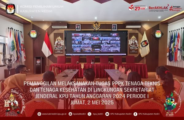 Kediri, kab-kediri.kpu.go.id - Jumat (2/5) KPU Kabupaten Kediri mengikuti Pemanggilan Melaksanakan Tugas PPPK Tenaga Teknis dan Tenaga Kesehatan di Lingkungan Sekretariat Jenderal KPU Tahun Anggaran 2024 Periode I yang diselenggarakan KPU Provinsi Jawa Timur. Bertempat di Aula KPU Kabupaten Kediri, acara dilaksanakan secara daring. Turut hadir dari KPU Kabupaten Kediri, Kasubag SDM Andik Indarto bersama peserta PPPK dari KPU Kabupaten Kediri Nanang Sugiarto, Sugiani, Rido Richa Rurindasari, Sehanto, Fitri Wahyuni dan Ita Sri Wulan. Pada kesempatan kali ini Nanik Karsini Sekretaris KPU Provinsi Jawa Timur menyampaikan arahan bahwa yang sebelumnya sebagai tenaga pendukung bertanggungjawab ke provinsi sekarang sudah bertanggungjawab di satker penempatan masing-masing. "Sekarang teman-teman sudang langsung mempertanggungjawabkan kinerjanya di satker masing-masing," terang Nanik. Nanik juga berpesan dengan status yang berubah harus berbanding lurus dengan peningkatan kinerja kan integritasnya. "Saya harap dengan adanya peningkatan status ini teman-teman dapat meningkat juga kinerja dan integritasnya," tutup Nanik.(and)