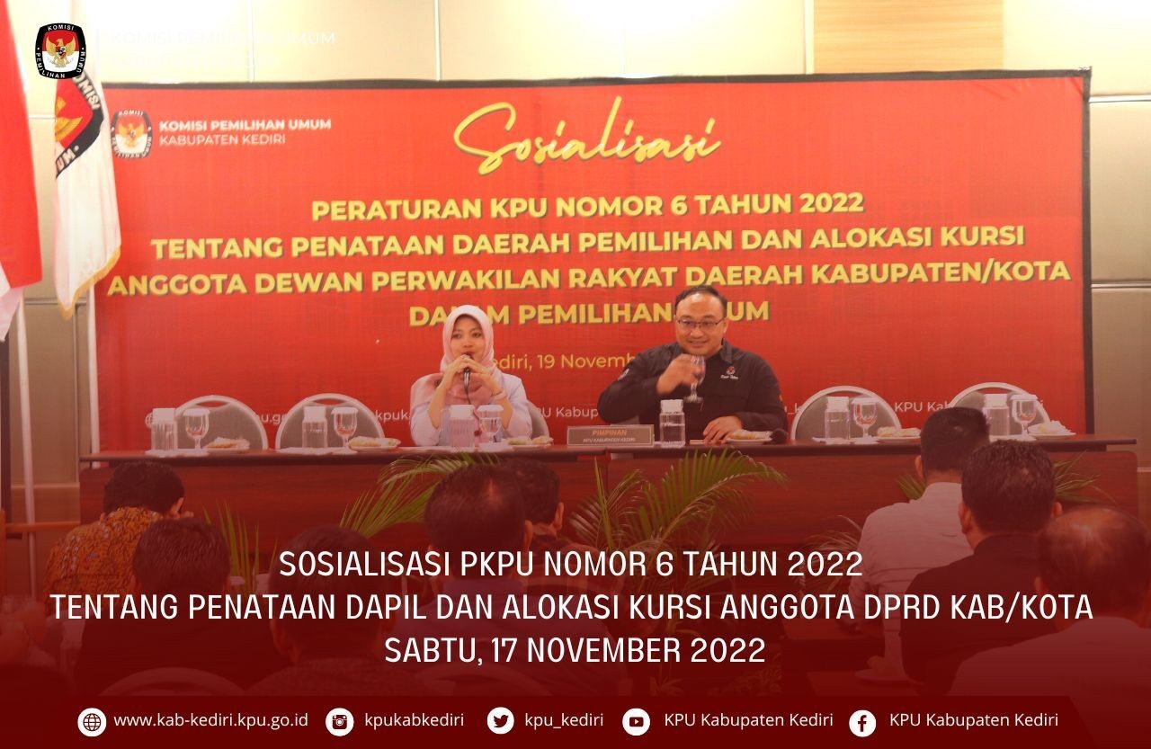 Kediri, kab-kediri.kpu.go.id - Sabtu (19/11/2022) Komisi Pemilihan Umum (KPU) Kabupaten Kediri lakukan Sosialisasi Penataan Daerah Pemilihan dan Alokasi Kursi Anggota Dewan Perwakilan Rakyat Daerah Kabupaten / Kota Dalam Pemilihan Umum di Favehotels Kediri. Kegiatan tersebut diikuti oleh beberapa elemen masyarakat, diantaranya; partai politik, Bakesbangpol, dispendukcapil dari pemerintah daerah, tokoh agama, tokoh masyarakat, organisasi kependudukan, organisasi mahasiswa, hingga organisasi kepemudaan. Acara tersebut dibuka dengan sambutan dari Ninik Sunarmi selaku Ketua KPU Kabupaten Kediri. Ia juga menjadi moderator bagi pemateri sosialisasi yaitu Komisioner Divisi Perencanaan Data, dan Informasi, Eka Wisnu Wardhana, “Pak Wisnu merupakan komisioner yang ahli dalam beberapa bidang di KPU, meski sebenarnya sosialisasi ini merupakan bagian dari divisi Teknis Penyelenggaraan Pemilu yang hari ini berhalangan hadir karena harus dinas luar. Beliau tadi malam sudah simulasi menyampaikan materi untuk siang ini,” jelas Ninik. Wisnu menjelaskan bahwa tahapan ini merupakan salah satu tahapan yang krusial bagi partai politik, khususnya bagi partai non parlemen dan partai parlemen yang juga harus tetap bersiap. Ia juga meminta Bawaslu juga tetap siap siaga untuk memantau, termasuk bagi masyarakat yang juga perlu tahu. “Hal ini merupakan salah satu tahapan yang krusial karena awal pertempuran partai politik mulai dari sini (penataan dapil), dapil merupakan arena pertempuran bagi para calon peserta pemilu 2024,” ungkap Wisnu. Kegiatan tersebut juga menjadi sarana sosialisasi aplikasi yang dikembangkan oleh KPU RI yaitu SIDAPIL (Sistem Informasi Daerah Pemilihan) yang memudahkan dalam penataan dapil karena aplikasi tersebut bisa mendeteksi kecamatan yang digabung dalam daerah pilih maupun dipisah. Selain SIDAPIL, beberapa hal yang menjadi materi sosialisasi adalah urgensi penataan dapil, rancangan program kegiatan penataan dapil yang akan datang, pencermatan data kependudukan dan data wilayah, hingga tujuh prinsip pendapilan sesuai Undang - undang. Terakhir, Wisnu menantang para peserta guna memberikan usul terkait dapil, bukan hanya partai politik. Namun juga para tokoh masyarakat, Bawaslu, hingga organisasi mahasiswa sebagai akademisi, “saya ingin penataan dapil bukan hanya dilihat dari kacamata kepentingan politik, namun juga kacamata akademisi,” jelasnya. (Adn/Humas).