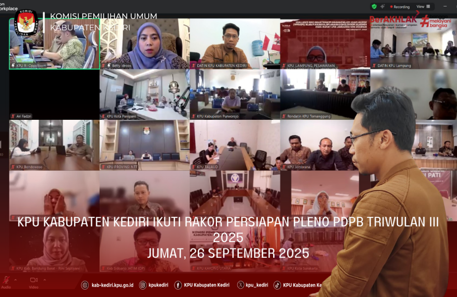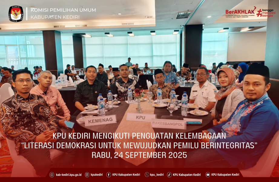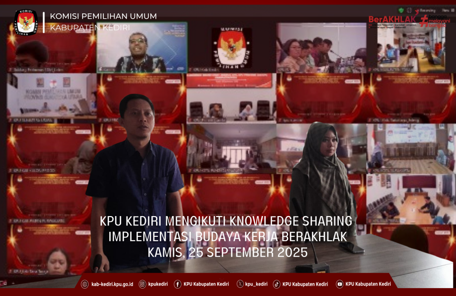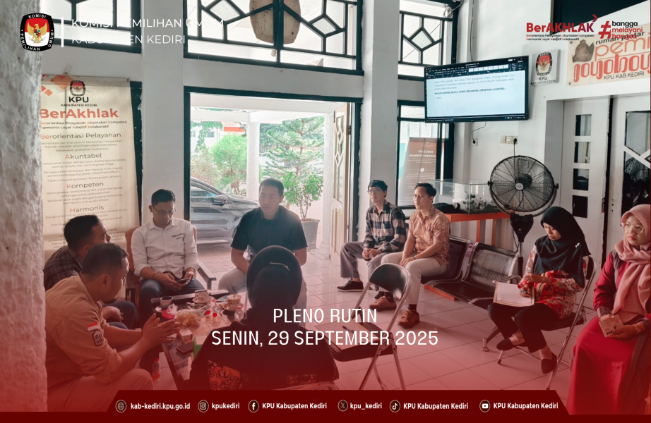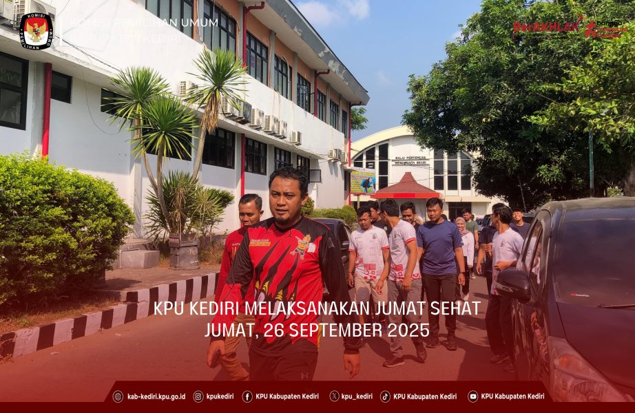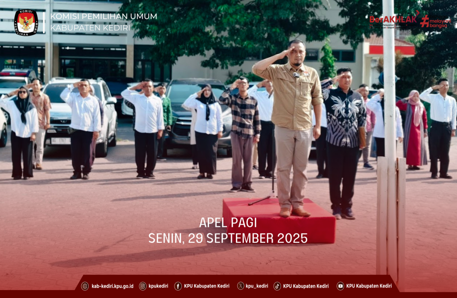 Kediri, kab-kediri.kpu.go.id - Senin (29/09), KPU Kabupaten Kediri menggelar apel pagi rutin yang dilaksanakan setiap hari Senin dan diikuti oleh seluruh jajaran Sekretariat KPU Kabupaten Kediri. Kegiatan dimulai pukul 08.00 WIB dan berlangsung tertib hingga selesai. Petugas apel membuka kegiatan dengan menyampaikan laporan kepada pembina apel, dilanjutkan penghormatan kepada Bendera Merah Putih, serta mengheningkan cipta untuk mengenang jasa para pahlawan bangsa. Apel dipimpin oleh Nanang Qosim, Ketua KPU Kabupaten Kediri. Dalam amanatnya beliau menekankan pentingnya menjaga profesionalitas dan semangat persatuan bangsa. Momentum 29 September yang bertepatan dengan peringatan peristiwa bersejarah G30S/PKI menjadi pengingat bahwa seluruh komponen bangsa harus selalu setia kepada Negara Kesatuan Republik Indonesia. "Sebagai anak bangsa, sebagai warga negara, terlebih sebagai aparatur penyelenggara negara, kita sudah mengucapkan sumpah setia untuk menjaga persatuan Indonesia. Sumpah setia bahwa kepentingan bangsa harus diutamakan di atas kepentingan pribadi maupun golongan," ujarnya Nanang. Lebih lanjut, Nanang mengajak jajaran KPU Kabupaten Kediri untuk menunjukkan dedikasi dan tanggung jawab dalam menjalankan tugas. "Kita bisa karena kita bersama, kita kuat karena kita bersatu. Persatuan adalah kunci utama bangsa Indonesia," pungkasnya. Selepas pelaksanaan apel pagi dilaksanakan juga penyerahan SK bagi CPNS dan PPPK di lingkungan KPU Kabupaten Kediri.(and)