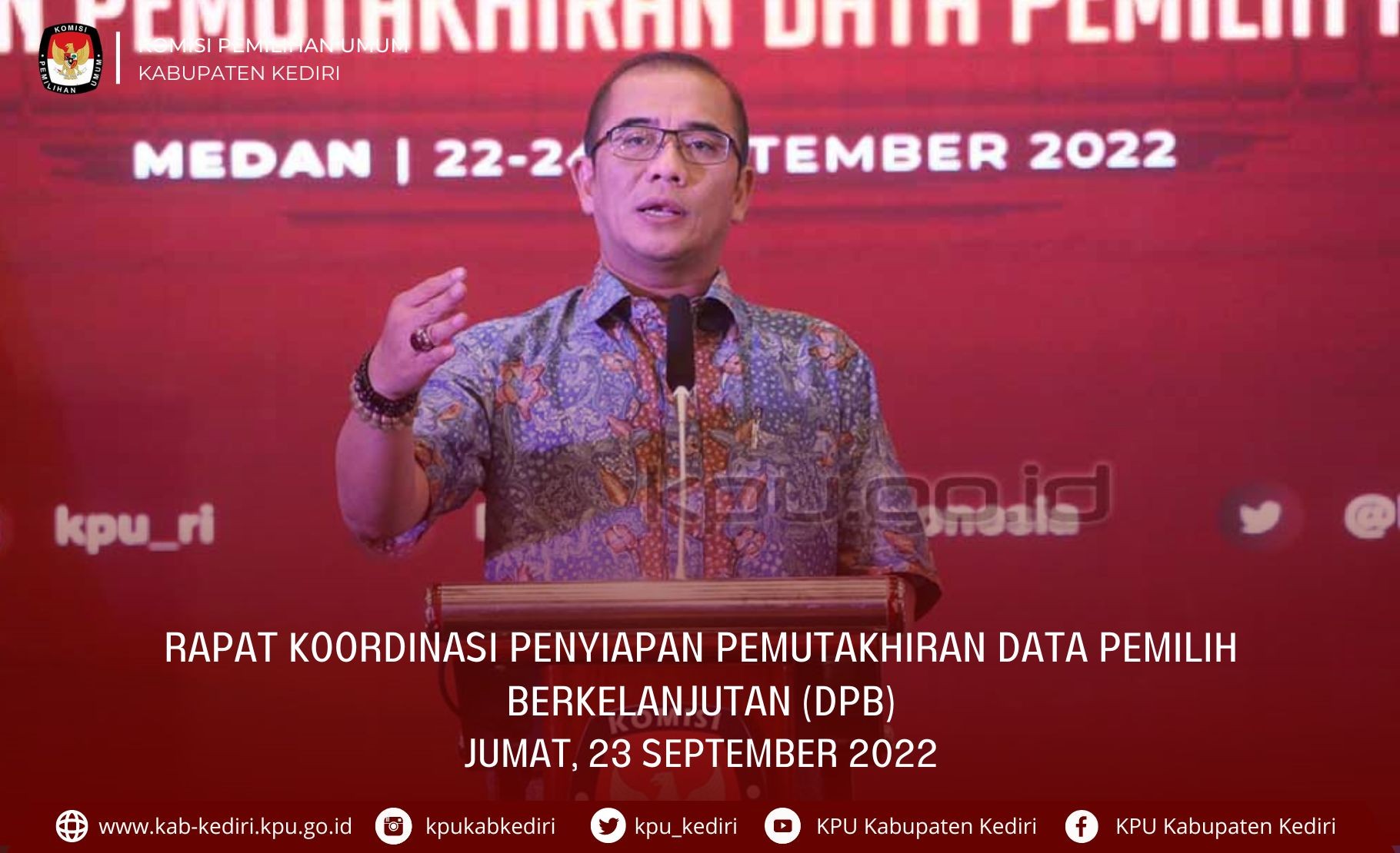Kediri, kab-kediri.kpu.go.id – Jumat (23/9/2022) Komisi Pemilihan Umum (KPU) Kabupaten Kediri mengikuti Rapat Koordinasi Penyiapan Pemutakhiran Data Pemilih Berkelanjutan (DPB) Sebagai Bahan Pemutakhiran Pemilu Tahun 2024 yang dilaksanakan di Medan, Sumatera Utara. Ketua KPU RI, Hasyim Asy’ari menekankan pentingnya metode pencermatan warga yang tidak ditempat saat pemungutan suara pada Penutupan Verifikasi dan pemutakhiran data yang ada dalam Data Pemilih Berkelanjutan (DPB) perlu dilakukan, terutama kepada pemilih yang tidak berdomisili sesuai data penduduk karena memang rawan dalam pemungutan suara saat Pemilu nantinya. Untuk itu dalam upaya memperhatikan kondisi pemilih yang berada di luar negeri, kota pelajar, dan kota sentral industri, KPU berupaya agar suara pemilih tersebut dapat tersampaikan dan dikoordinasikan dengan baik. “Keadaan seperti ini yang harus kita cermati, sehingga nanti bisa diantisipasi dan difasilitasi dalam Daftar Pemilih Tetap (DPT) khusus dan pendirian Tempat Pemungutan Suara (TPS) khusus,” tegas Hasyim “Pemutakhiran DPB yang dilakukan selama ini dipersiapkan untuk sinkronisasi dengan data kependudukan oleh pemerintah bersama KPU sesuai UU Nomor 7 Tahun 2017” imbuh Betty Epsilon Idroos selaku Anggota Komisi Pemilihan Umum (KPU) Republik Indonesia saat menyampaikan kesimpulan rapat. Acara ini dihadiri oleh 1.096 peserta rakor yang terdiri dari Ketua, Anggota, Kepala Bagian, Kepala Sub Bagian yang menangani Data dan Teknologi Informasi KPU Provinsi dan KPU Kabupaten/Kota se-Indonesia. (frn/humas)