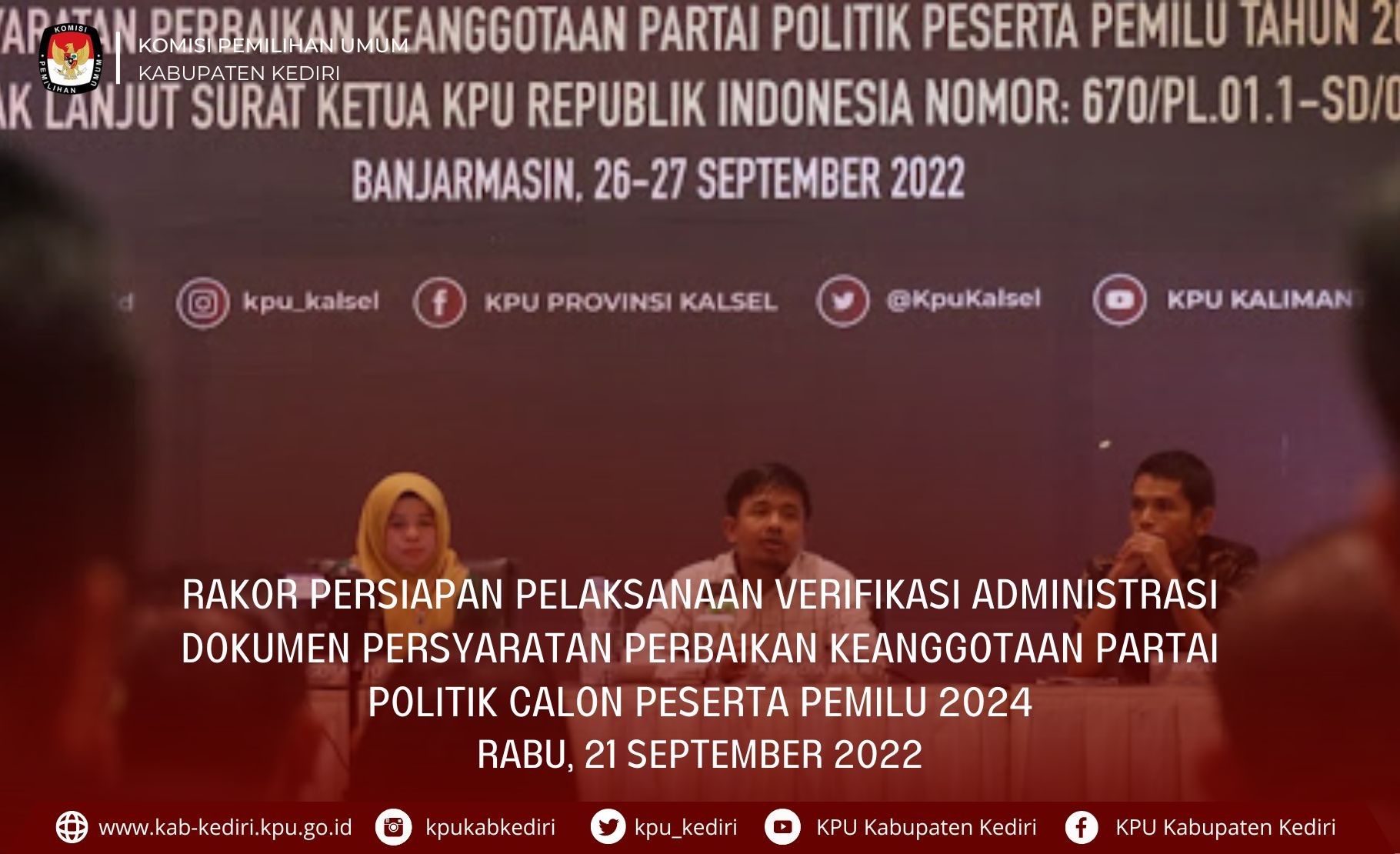 Kediri, kab-kediri.kpu.go.id – Rabu (21/9/2022) Komisi Pemilihan Umum (KPU) Kabupaten Kediri mengikuti Rapat Koordinasi Persiapan Pelaksanaan Verifikasi Administrasi Dokumen Persyaratan Perbaikan Keanggotaan Partai Politik Peserta Pemilu Tahun 2024 dan Tindak Lanjut Surat Ketua KPU Nomor: 670/PL.01.1-SD/05/2022. Rapat Koordinasi Persiapan Pelaksanaan Verifikasi Administrasi Dokumen Persyaratan Perbaikan Keanggotaan Partai Politik Peserta Pemilu Tahun 2024 dan Tindak Lanjut Surat Ketua KPU Nomor: 670/PL.01.1-SD/05/2022. Berlangsung di Banjarmasin, Idham Holik hadir sebagai pembicara. Masyarakat memiliki hak politik, maka jika terdapat yang mengundurkan diri dari anggota politik KPU menyajikan fitur penghapusan data guna membersihkan data terkait partai politik pada masyarakat yang bersangkutan. "Kami sudah memberikan tools untuk partai politik menghapus. Jadi yang menghapus partai politik yang bersangkutan. Kami sudah sampaikan, mohon apabila ada hasil klarifikasi yang bersangkutan bukan anggota partai politik, maka itu harus dihapus," jelas Idham. Idham juga menambahkan bahwa data hanya dapat dihapus oleh pihak partai politik, karena partai politik selaku pihak yang mengunggah data masyarakat yang bersangkutan dalam Sistem Informasi Politik (Sipol). Jika memasuki tahap pelaksanaan input data perbaikan administrasi persyaratan pendaftaran partai politik, terdapat data sama atau sinkron seperti sebelumnya, maka termasuk dalam kategori kegandaan eksternal dan dinyatakan Tidak Memenuhi Syarat (TMS). "Dinyatakan TMS, kenapa? karena kami memandang dokumen berita acara yang rekan-rekan sudah tetapkan itu tidak boleh berubah lagi, karena kalau dia ganda eksternal dan berubah-ubah berita acara kemarin," lanjut Idham. Terakhir, Idham menjelaskan bahwa anggota parpol yang menghendaki pindah parpol diperbolehkan. Dengan syarat melaksanakan tahap administrasi tepat setelah tanggal 14 Desember 2022 atau pasca penetapan parpol sebagai peserta pemilu. Idham juga berpesan agar satker KPU mendokumentasikan tahap verifikasi guna merumuskan norma dan evaluasi. (pnj)