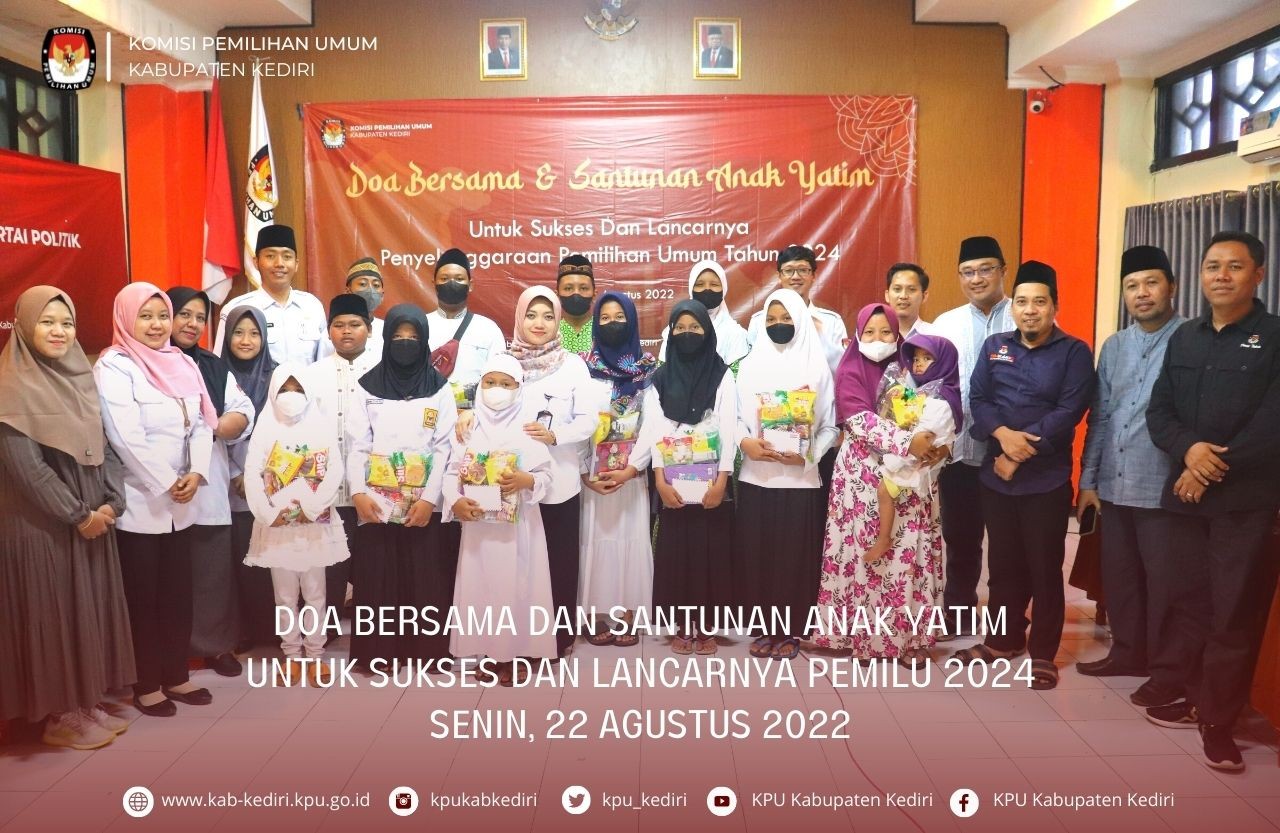 Kediri, kab-kediri.kpu.go.id - Senin (22/8/2022) KPU Kabupaten Kediri melaksanakan kegiatan Doa Bersama dan Santunan Anak Yatim dalam Rangka Sukses dan Lancarnya Penyelenggaraan Tahapan Pemilu Tahun 2024. Bertempat di ruang Media Center, kegiatan ini berlangsung pukul 15.00-16.30 WIB dengan mengundang sekitar 15 anak yatim. Selain Ninik, hadir pula dalam acara ini, anggota KPU Kabupaten Kediri, Eka Wisnu Wardhana, Agus Hariono, Anwar Ansori, Sekretaris Randy Agatha dan juga seluruh jajaran sekretariat. Ketua KPU Ninik Sunarmi mengungkapkan acara doa bersama tersebut bertujuan untuk melancarkan penyelenggaraan Tahapan Pemilu Tahun 2024 mendatang. "Dengan kegiatan ini kami mengharapkan doa dari semuanya agar pelaksanaan tahapan Pemilu serentak 2024 yang telah berjalan ini dapat dilaksanakan dengan baik dan lancar tanpa ada suatu permasalahan berarti dan para penyelenggara Pemilu khususnya dapat diberikan kesehatan dalam menjalankan setiap tugas dan kewajibannya," kata Nanik. Disamping itu, Ninik juga berpesan kepada anak-anak yang hadir untuk tetap gigih meraih cita-cita meskipun orang tua (ayah) telah tiada karena kesuksesan dimasa depan hanya bisa diraih dengan semangat dan kerja keras. “Tak ada yang instan di dunia ini, siapa yang berusaha dengan keras maka Allah akan ganti usahanya tersebut dengan kebaikan dan kesuksesan dimasa depan,” tuturnya. Acara kemudian dilanjutkan dengan doa bersama disambung pemberian bingkisan dan santunan kepada anak yatim yang diserahkan langsung oleh Ketua dan Anggota KPU beserta Sekretaris yang diikuti segenap jajaran sekretariat KPU Kabupaten Kediri. (pnj)