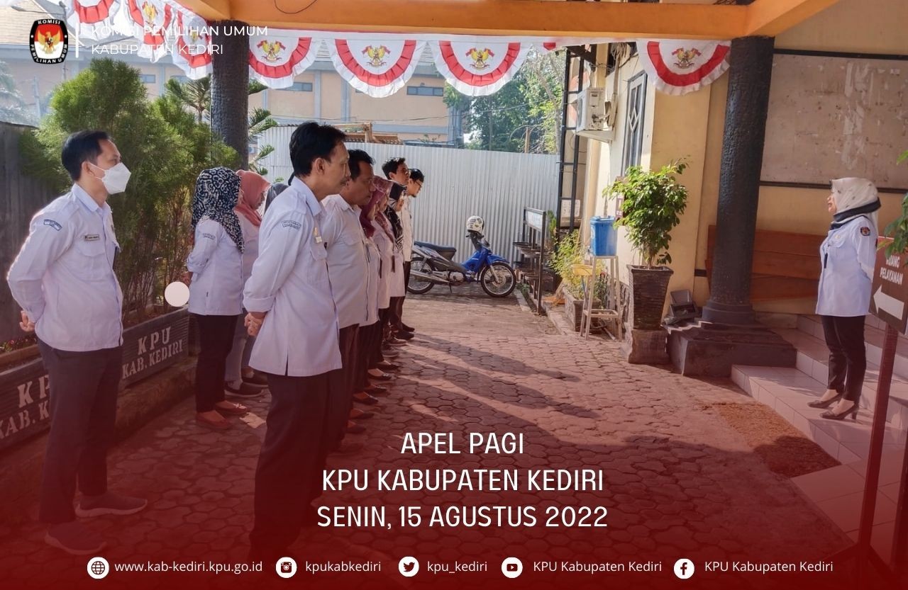Kediri, kab-kediri.kpu.go.id - Senin (15/8/2022) tepat pukul 08.00 WIB, bertempat di halaman kantor jajaran sekretariat Komisi Pemilihan Umum (KPU) Kabupaten Kediri melaksanakan apel pagi. Apel pada minggu ketiga di bulan Agustus ini dipimpin langsung Sekretaris KPU, Bekti Rochani. Dalam amanatnya Bekti, menghimbau kepada sekretariat di jajaran sekretariat KPU Kabupaten Kediri untuk mempersiapkan diri karena sudah memasuki Tahapan Pemilu Serentak Tahun 2024. “Saya harap seluruh personil di lingkungan KPU Kabupaten Kediri selalu siap, entah dalam hal pelayanan maupun untuk integritas tetap harus kita dijaga,” ucap Bekti. “Kita saling bersinergi, tahapan sudah berjalan, mari kita saling mengisi, saling melengkapi, dan menjaga kekompakan. Terkadang bila ada kekurangan, semaksimalnya kita harus saling membackup. Selagi pekerjaan proporsional, sebisanya kita bisa saling mendukung. Karena kita adalah satu, satu kesatuan sebagai Penyelenggara Pemilu,” tambahnya. Diakhir Bekti juga mengatakan kerja dalam tim harus mampu membuang ego sectoral antar bagian. Karena kita KPU Kabupaten Kediri utuh satu kesatuan, harus saling melengkapi. “Kita harus mampu dan saling bersinergi antar bagian untuk menghasilkan solusi dalam menangani permasalahan-permasalahan yang ada. Tim yang hebat adalah yang solid dan kompak antar bagian yang satu dengan yang lain,” tuturnya. (pnj/don)