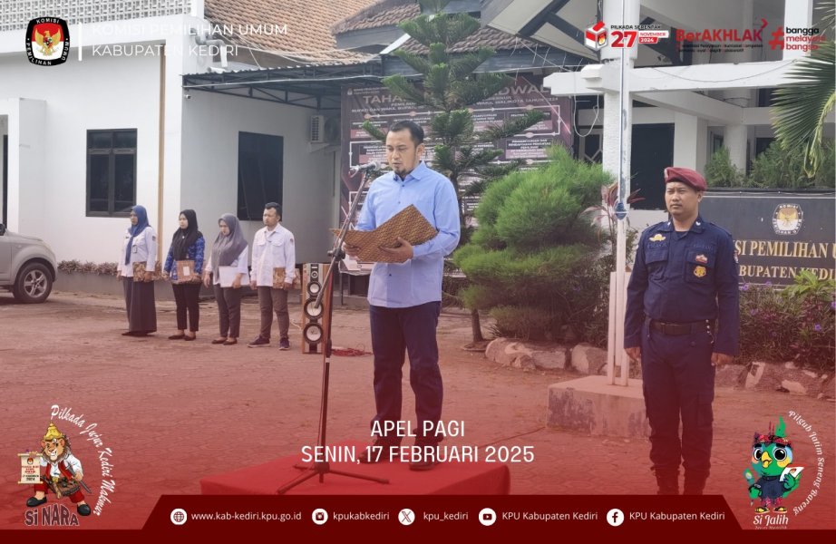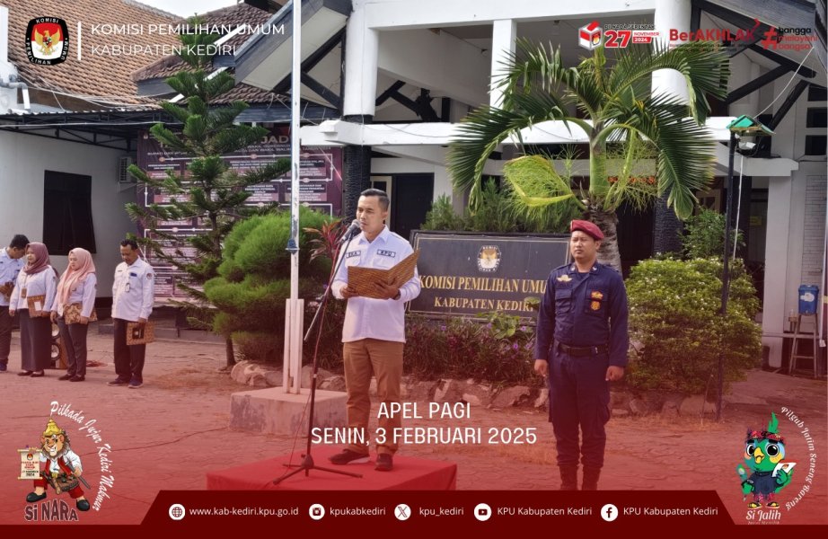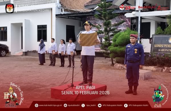 Kediri, kab-kediri.kpu.go.id - Senin (10/2), KPU Kabupaten Kediri menggelar Apel Pagi rutin setiap hari Senin yang diikuti oleh seluruh jajaran sekretariat KPU Kabupaten Kediri. Berlangsung mulai pukul 08.00 WIB sampai dengan selesai. Sesuai dengan teks susunan apel berjalan dengan lancar. Diawali dengan laporan kepada pembina apel dan dilanjut dengan penghormatan kepada bendera merah putih, kemudian mengheningkan cipta untuk mengenang jasa-jasa pahlawan bangsa Indonesia. Bertindak sebagai pembina Apel, Randy Agatha Sakaira, selaku Sekretaris KPU Kabupaten kediri menyampaikan apresiasi kepada seluruh jajaran KPU Kabupaten Kediri yang masih mau dan mampu untuk melaksanakan apel pagi rutin setiap Senin pagi. "Terimakasih kepada kawan-kawan yang masih mau dan mampu untuk melaksanakan apel pagi rutin pada Senin hari ini," ujar Randy. Lebih lanjut Randy juga menyampaikan untuk segera meyelesaikan proses pengembalian dana hibah ke Pemerintah Kabupaten Kediri karena hal itu merupakan salah satu tanggungjawab yang harus segera diselesaikan. "Kita masih memiliki tanggungjawab yang harus diselesaikan yaitu pengembalian dana hibah, saya berharap kawan-kawan dapat segera menyelesaikan," terang Randy. Sebagai penutup amanat apel pagi ini Randy berpesan untuk terus meningkatkan kekompakan dan juga saling membantu dalam pekerjaan di segala bidang. "Terakhir saya berpesan untuk tetap menjaga kekompakan dengan bergotong royong mengerjakan pekerjaan yang harus diselesaikan ," tutup Randy.(and)