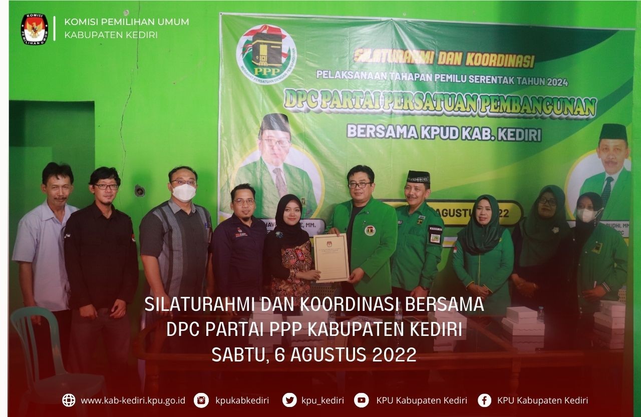 Kediri, kab-kediri.kpu.go.id - Sabtu (6/8/2022) pukul 15.00 WIB Komisi Pemilihan Umum (KPU) Kabupaten Kediri melakukan kegiatan Silaturahmi dan Koordinasi bersama partai politik, kali ini kunjungan dilakukan ke kantor DPC Partai Persatuan Pembangunan (PPP) Kabupaten Kediri.