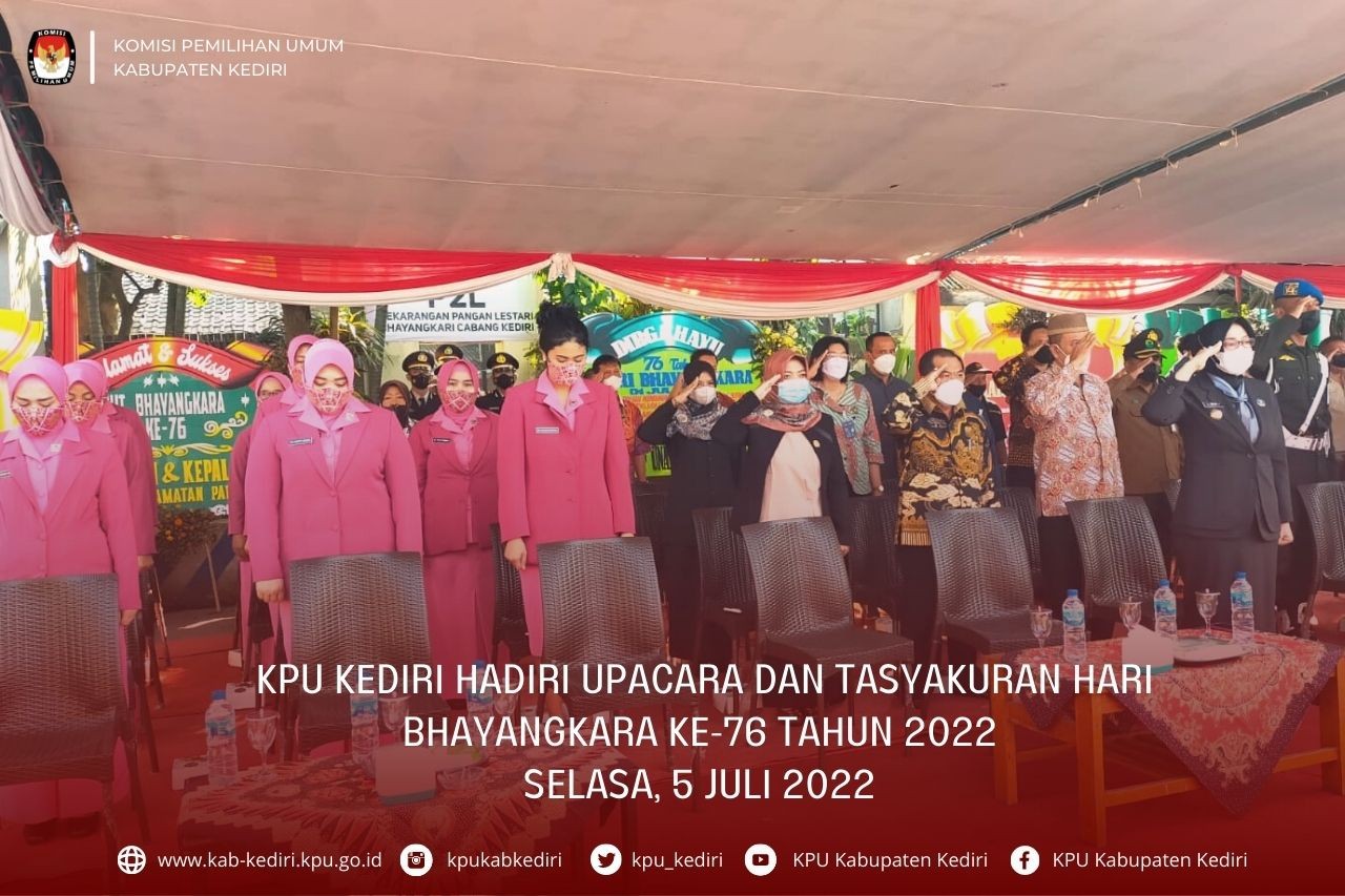 Kediri, kab-kediri.kpu.go.id - Selasa (5/7/2022) Pukul 07.30 WIB bertempat di lapangan Indoor Mapolres Kediri, Jl. PB. Sudirman No. 56, Pare, Ketua KPU Kabupaten Kediri, Ninik Sunarmi menghadiri Upacara dan Tasyakuran Hari Bhayangkara Ke-76 Tahun 2022. HUT Bhayangkara ke-76 di Polres Kediri ini juga di ikuti oleh Bupati Kediri Hanindhito Himawan Pramana dan seluruh jajaran Forkopimda Kabupaten Kediri serta anggota polisi di Kabupaten Kediri. Dalam kegiatan ini, Kapolres Kediri AKBP Agung Setyo Nugroho menyatakan untuk siap dikritik demi memberikan pelayanan terbaik kepada masyarakat Kabupaten Kediri. Lebih lanjut, Kapolres Kediri menyampaikan, kegiatan HUT Bhayangkara ini dilanjutkan dengan tasyakuran, bakti sosial, dan olahraga. Kemudian, sesuai arahan dari Kapolri Jenderal Listyo Sigit Prabowo sebagai Polri presisi sehingga kedepannya akan memaksimalkan layanan yang ada di Polres Kediri. "Saya sampaikan di HUT Bhayangkara ke 76 ini, kita juga tidak anti kritik, tapi siap dikritik. Ini demi kebaikan pelayanan Polres Kediri kepada masyarakat,” jelasnya. Bahkan, kata dia, yang perlu dibenahi ada banyak hal terutama yang dirasakan oleh masyarakat dalam kegiatan pelayanan khususnya anggota ketika menjalankan tugas di lapangan bagaimana etikanya menyampaikan kepada masyarakat walaupun harus tetap senyum dan disiplin pelayanan harus cepat dalam internal Polres Kediri. “Pastinya kita bersinergi dengan teman-teman, media masyarakat, tokoh agama dan pemerintah Kabupaten Kediri dalam perekonomian semakin meningkat dan menjaga kamtibmas,” pungkasnya. Acara puncak HUT ke-76 Bhayangkara ini digelar di Akpol Semarang. Kegiatan itu diikuti jajaran Polda dan Polres baik secara langsung maupun virtual yang dipimpin langsung Presiden Joko Widodo. (don)