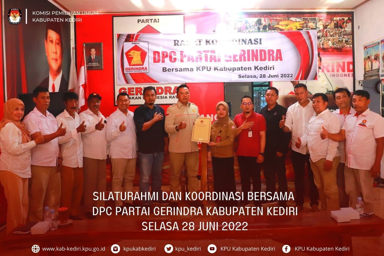 Kediri, kab-kediri.kpu.go.id – Selasa (28/06/2022) pukul 14.00 WIB Komisi Pemilihan Umum (KPU) Kabupaten Kediri kembali melanjutkan Kegiatan Silaturahmi dan Koordinasi bersama partai politik, kali ini kunjungan dilakukan ke kantor DPC Gerindra Kabupaten Kediri.