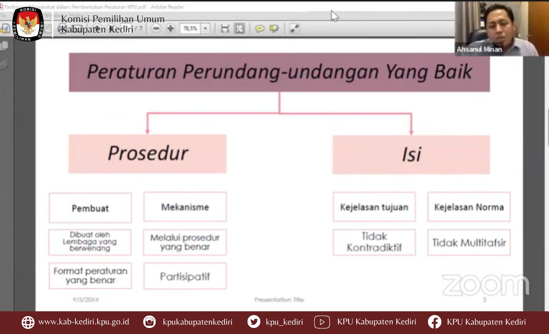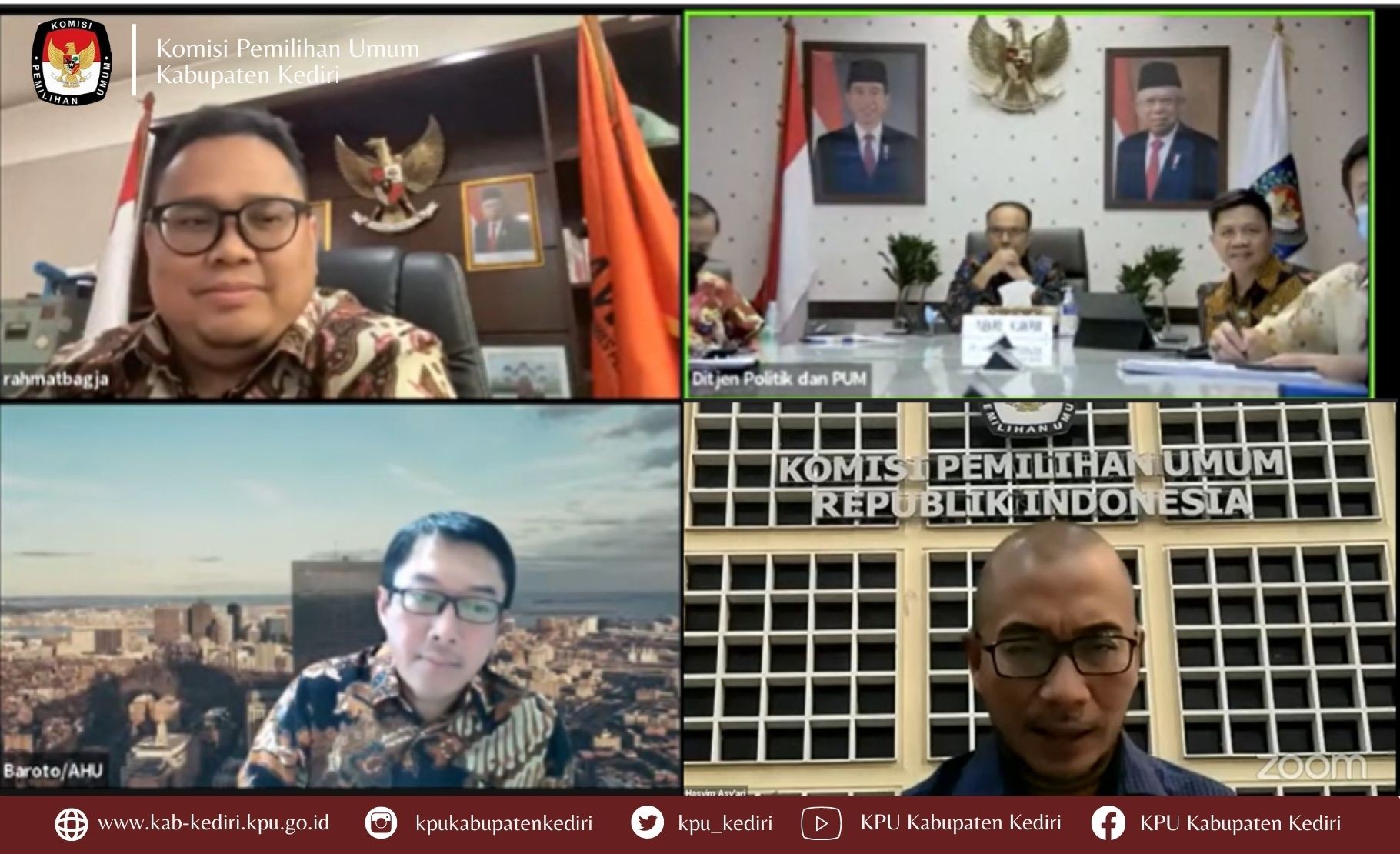 Kediri, kab-kediri.kpu.go.id - Masih dalam Sosialisasi Rancangan Peraturan KPU tentang Pendaftaran, Verifikasi dan Penetapan Partai Politik yang diselenggarakan oleh Direktur Jenderal Politik dan Pemerintah Umum Kementerian Dalam Negeri. Kamis (7/4/2022). Acara dilanjut dengan penyampaian materi pertama, dari Direktur Tata Negara Ditjen Administrasi Hukum Umum Kemenkumham RI, Baroto. Beliau dalam paparannya menyampaikan, update perkembangan yang berkaitan dengan partai politik. Terkait dengan partai setidaknya tidak banyak mengalami perubahan apalagi regulasinya belakang ini tidak mengalami perubahan, biasanya tiap ada agenda pemilu biasanya memang ada perubahan undang-undang partai politik dan namun hingga 2011 tidak ada perubahan sama sekali terkait partai politik. “Terkait pendaftaran partai, kita tahu partai merupakan organisasi yang sifatnya nasional inilah yang membedakan partai politik dengan badan hukum lainnya. Dan syarat mendirikan partai pun harus menjangkau sampai wilayah dan setidaknya harus ada kepengurusan di 100% Provinsi, 75% di Kab/Kota dan 50% di tingkat kecamatan di kabupaten tersebut. Dan ini digambarkan parpol ini yang sifatnya nasional dan berbeda dengan Yayasan, perkumpulan atau organisasi lainnya,” ujarnya.. Lebih lanjut, Baroto menjelaskan jika persyaratan partai sebenarnya simple, bahwa bagaimana sebuah badan hukum ini menjadi partai politik, ada syarat administrasi misalnya akta notaris, kemudian melampirkan kepengurusan, ada kantor tetapnya serta rekening atas nama partai. Dan saya sangat yakin ketika partai telah didesain sedemikian rupa maka akan terpenuhi persyaratan-persyaratan tadinya. “Terkait update partai saat ini, kebanyakan relatif yang dikenal di masyarakat, tetapi setidaknya ada 75 partai politik yang berbadan hukum, nah pertanyaannya apakah masing-masing partai ini punya kemampuan secara organisasi sehat apa tidak, nah ini yang menjadi pertanyaan kita, fakta yang ada tidak lebih dari separoh yang aktif, kenapa partai sering dinamis, kenapa partai sering ada persoalan dan kenapa parpol sering terjadi konflik, sedangkan proses pembubaran partai juga tidak sederhana. Dalam UUD pasal 24 huruf c yang mengatur untuk membubarkan partai harus melalui Mahkamah Konstitusi dan pembubarannya akan proses yang panjang dan tidak gampang,” tambahnya Sementara itu, pemateri kedua Anggota Bawaslu RI Rahmat Bagja menyampaikan dalam Putusan Mahkamah Konstitusi (MK) nomor 55/PUU-XVIII/2020 tentang verifikasi Partai Politik (Parpol), menyebutkan bahwa Partai yang lolos (Parliamentary Threshold) (PT) hanya mengikuti Verifikasi Administrasi saja untuk menjadi peserta parpol. “Parpol yang dimaksud adalah parpol yang telah lolos verifikasi di tahun 2019 dan lolos ketentuan PT pada pemilu 2019 serta verifikasi administrasi dan verifikasi faktual terhadap parpol baru, parpol yang hanya memiliki keterwakilan di tingkat DPRD dan parpol yang tidak memiliki keterwakilan di tingkat DPRD,” ucapnya. Sedangkan Partai Politik calon peserta Pemilu yang telah ditetapkan memenuhi persyaratan berdasarkan hasil Verifikasi Administrasi dan Verifikasi Faktual. Terdiri dari : Partai Politik calon peserta Pemilu yang tidak memenuhi ambang batas perolehan suara paling sedikit 4 (empat) persen dari perolehan suara sah secara nasional hasil Pemilu Terakhir dan memiliki keterwakilan di tingkat DPRD Provinsi dan DPRD Kabupaten/Kota; Partai Politik calon peserta Pemilu yang tidak memenuhi ambang batas perolehan suara paling sedikit 4 (empat) persen dari perolehan suara sah secara nasional hasil Pemilu Terakhir dan tidak memiliki keterwakilan di tingkat DPRD Provinsi dan DPRD Kabupaten/Kota;dan Partai Politik yang ditetapkan dengan keputusan menteri yang menyelenggarakan urusan pemerintahan di bidang hukum dan hak asasi manusia. Di Akhir paparan nya, Rahmat menyampaikan kesimpulan terkait Sistem Informasi Partai Politik (Sipol) untuk tidak dijadikan sebagai syarat mutlak untuk pendaftaran parpol di pemilu 2024. Menurutnya Sipol cukup hanya dijadikan sebagai alat bantu untuk memudahkan parpol dalam pendaftaran, verifikasi dan penetapan parpol peserta pemilu. KPU perlu mempertimbangkan aturan proses verifikasi secara manual, KPU memaksimalkan bimtek kepada jajaran KPU di daerah. Dan terakhir mensinkronisasi data dengan Kemenkumham. Dan pemateri terakhir, Anggota KPU RI Hasyim Asy'ari menyampaikan yang pertama KPU sudah sampai saat ini sudah menyiapkan draft pendaftaran partai politik, verifikasi partai politik dan penetapan partai politik peserta pemilu tahun 2024. Yang kedua Undang-Undang pemilu untuk tahun 2024 masih sama dengan Undang-Undang Pemilu di tahun 2019 yaitu Undang-undang No. 7 Tahun 2017, sehingga masih dikatakan kurang lebih sama prosesnya, konstruksi berpikir, cara berpikirnya kurang lebih hampir sama, hanya saja ada ketentuan yang baru, yang berbeda terkait hasil Judicial Review atau uji materi terhadap beberapa pasal terkait partai politik. “Agar tidak melenceng dari tema rujukannya masih tetap sama yaitu UU No. 7 Tahun 2017 tentang Pemilu dan masih draft PKPU tentang pendaftaran partai politik, verifikasi partai politik dan penetapan partai politik peserta pemilu tahun 2024 dan itu masih dilakukan sosialisasi, rapat dengar pendapat, rapat kerja dengan DPR, DPD, DPRD. Di Undang-undang No. 7 Tahun 2017 salah satu peserta pemilu yaitu partai politik, untuk jenis pemilu anggota DPR, anggota DPRD Provinsi dan DPRD Kab/Kota, dan persyaratannya apa saja?di pasal 172 (2), yang pertama syaratnya parpol itu berbadan hukum, kepengurusan di tingkat pusat, punya pengurus disemua di seluruh provinsi dan dalam draf PKPU untuk tahapan itu mulai 1-7 Agustus 2022 ini,” tegasnya. Hasyim menambahkan adapun 3 kategori parpol sehingga parpol dapat lolos verifikasi administrasi dan verifikasi faktual yang dilakukan oleh KPU sebagai syarat partai politik menjadi peserta pemilu tahun 2024. “Tiga kategori itu adalah yang pertama partai politik peserta pemilu terakhir, yaitu partai politik 