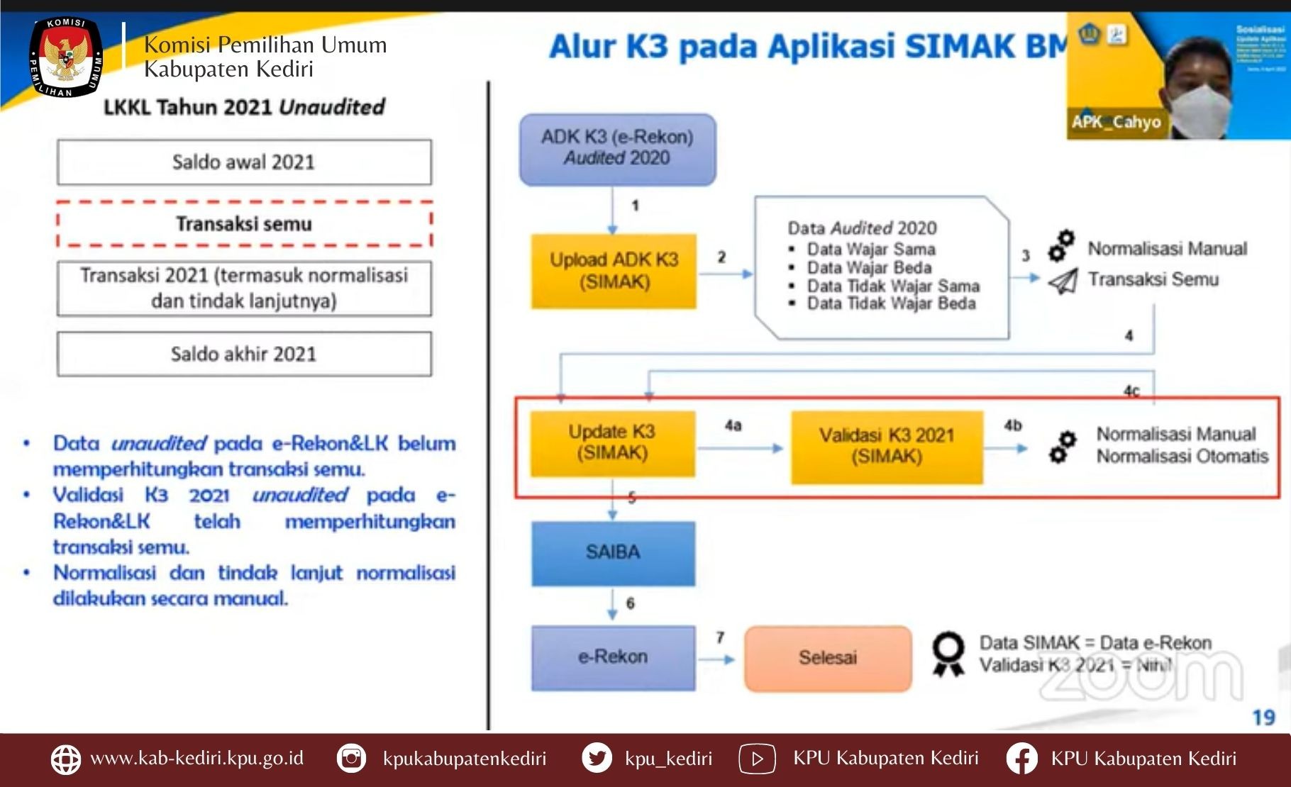 Kediri, kab-kediri.kpu.go.id - Kamis (4/4/2022) Komisi Pemilihan Umum (KPU) Kabupaten Kediri mengikuti acara Sosialisasi dan Update Aplikasi Penyusunan Laporan Keuangan Kementerian/Lembaga (LK-KL) Tahun 2021 Audited yang disiarkan langsung lewat kanal youtube Ditjen Perbendaharaan Direktorat APK Kemenkeu RI.