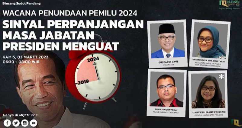 Kediri, kab-kediri.kpu.go.id - Kamis (3/3/2022) via youtube, Komisi Pemilihan Umum (KPU) Kabupaten Kediri mengikuti Dialog Publik dengan tema Pergantian Masa Jabatan 2022-2023 Menuju Pemilu 2024: Dinamika Politik, Keamanan, dan Efektifitas Pemerintah Daerah. Magister Ilmu Politik Fisip Universitas Muhammadiyah Jakarta (UMJ) bekerjasama dengan Institute for Politics.