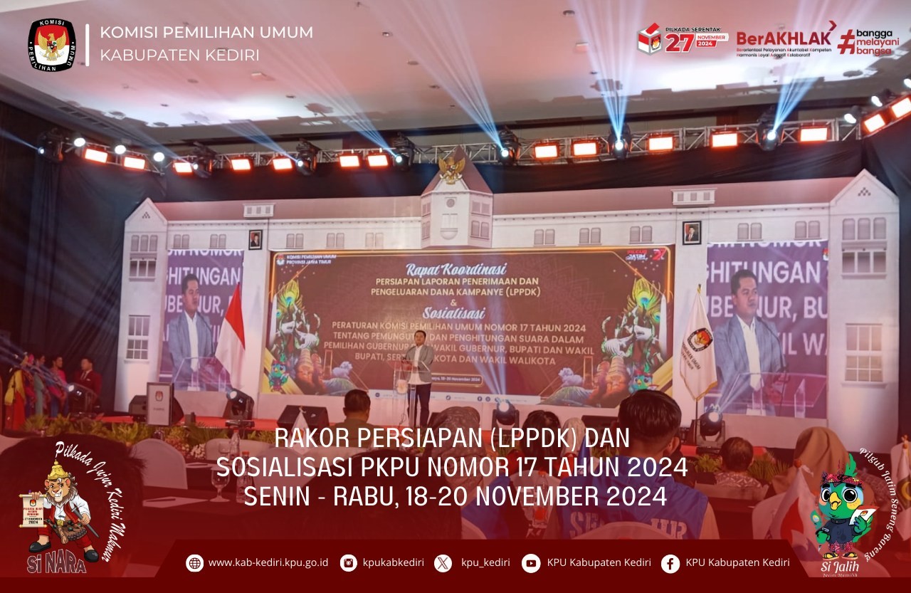 Kediri, kab-kediri.kpu.go.id - Senin (18/11) KPU Kabupaten Kediri mengikuti Rapat Koordinasi Persiapan Laporan Penerimaan dan Pengeluaran Dana Kampanye (LPPDK) dan Sosialisasi Peraturan Komisi Pemilihan Umum Nomor 17 Tahun 2024 Tentang Pemungutan dan Penghitungan Suara dalam Pemilihan Gubernur dan Wakil Gubernur, Bupati dan Wakil Bupati, serta Walikota dan Wakil Walikota. Rakor dilaksanakan di Grand Swiss-Belhotel Darmo, Jl. Bintoro No. 21-25, Tegalsari, Surabaya. Acara dimulai pukul 13.00 WIB dan dijadwalkan berlangsung selama 3 hari (18-20 November 2024) Dalam kesempatan ini KPU Provinsi Jatim mengundang peserta KPU Kab/Kota terdiri dari Divisi Teknis Penyelenggaraan Pemilu dan Divisi Hukum dan Pengawasan, Kasubag Tekhum, serta Admin/Operator Sikadeka. Turut hadir mewakili KPU Kabupaten Kediri, Divisi Teknis Irbabul Lubab, Divisi Hukum dan Pengawasan Moh Dziyaudin, Kasubag Tekhum Donny Hendrawan dan Operator Sikadeka Panji. Ketua KPU Jatim, Aang Kunaifi dalam sambutannya mengingatkan pentingnya Laporan Dana Kampanye oleh pasangan calon Gubernur dan Wakil Gubernur, Bupati dan Wakil Bupati, serta Walikota dan Wakil Walikota yang merupakan amanat dari Undang-Undang. Aang juga menekankan pentingnya memahami PKPU Nomor 17 Tahun 2024 sebagai rujukan dalam proses pemungutan dan penghitungan suara, sehingga semua pihak termasuk penyelenggara dan peserta pemilihan kepala daerah memiliki pemahaman bersama terkait aturan yang berlaku. "Tanggal 24 Nov merupakan batas penyampaian LPPDK hal ini penting disosialisasikan kepada Paslon, karena dalam masa kampanye pasti Paslon menerima dan mengeluarkan sumbangan baik sumbangan dalam bentuk uang, barang, maupun jasa, maka penting penggunaan ini dilaporkan untuk dipertanggungjawabkan," ucapnya. Beliau juga memastikan bahwa dalam rakor kali para LO Paslon dapat memahami detail PKPU 17 tahun 2024, mengingat ada beberapa perubahan terkait pemungutan dan penghitungan suara di TPS.