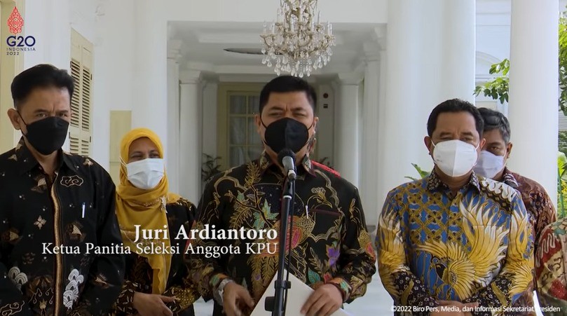 Kediri, kab-kediri.kpu.go.id - Kamis (06/01/2022) Presiden Joko Widodo menerima 14 nama calon anggota KPU dan 10 nama calon anggota Bawaslu. Setelah Tim Seleksi Calon Anggota KPU dan Bawaslu 2022-2027 menyelesaikan segala tahapan seleksi calon anggota penyelenggara pemilu yakni melalui tes kesehatan, psikologi lanjutan dan wawancara. Penyerahan nama calon anggota penyelenggara pemilu ini bertempat di Istana Kepresidenan Bogor dengan dihadiri 11 anggota tim seleksi. Laporan hasil seleksi anggota KPU dan Bawaslu masa jabatan 2022-2027 disampaikan sebagaimana yang sudah diamanatkan oleh Undang-undang kepada tim seleksi. “Kami tadi melaporkan mengenai proses seleksi selama tiga bulan mulai dari pengumuman pendaftaran, penerimaan pendaftaran, seleksi administrasi, tes tertulis, tes psikologi, tes kesehatan, wawancara kemudian juga profiling atau menggali rekam jejak dari setiap bakal calon. Kami tadi sudah menyampaikan nama-nama yang sudah kami putuskan melalui rapat pleno tim seleksi hari kemarin, tanggal 5 Januari 2022,” kata Ketua Tim Seleksi, Juri Ardiantoro. Berdasarkan Keputusan Tim Seleksi Calon Anggota Komisi Pemilihan Umum dan Calon Anggota Badan Pengawas Pemilihan Umum Masa Jabatan Tahun 2022-2027 Nomor: 358/TIMSEL/I/2022, ditetapkan 14 calon anggota KPU dan 10 calon anggota Bawaslu. Adapun keempat belas nama calon anggota KPU yang terdiri atas 10 orang laki-laki dan empat orang perempuan tersebut yaitu: 1. August Mellaz; 2. Betty Epsilon Idroos; 3. Dahliah; 4. Hasyim Asy’ari; 5. I Dewa Kade Wiarsa Raka Sandi; 6. Idham Holik; 7. Iffa Rosita; 8. Iwan Rompo Banne; 9. Mochammad Afifuddin; 10. Muchamad Ali Safa’at; 11. Parsadaan Harahap; 12. Viryan; 13. Yessy Yatty Momongan; dan 14. Yulianto Sudrajat. Sementara itu, kesepuluh calon anggota Bawaslu terdiri atas tujuh orang laki-laki dan tiga orang perempuan yaitu: 1. Aditya Perdana; 2. Andi Tenri Sompa; 3. Fritz Edward Siregar; 4. Herwyn Jefler Hielsa Malonda; 5. Lolly Suhenty; 6. Mardiana Rusli; 7. Puadi; 8. Rahmat Bagja; 9. Subair; dan 10. Totok Hariyono. Juri mengatakan daftar nama calon anggota KPU-Bawaslu tersebut telah diserahkan ke Presiden. Untuk kemudian Presiden nantinya akan menyerahkan ke DPR RI untuk pelaksanaan uji kepatutan dan kelayakan. "Itu teman-teman semua nama-nama yang sudah kami tadi serahkan kepada Presiden. Dalam kurun waktu 14 hari nanti Presiden akan menyerahkan kepada DPR," pungkas Juri. Dalam pertemuan dengan tim seleksi tersebut, Presiden Joko Widodo didampingi oleh Menteri Sekretaris Negara Pratikno dan Menteri Dalam Negeri Tito Karnavian.