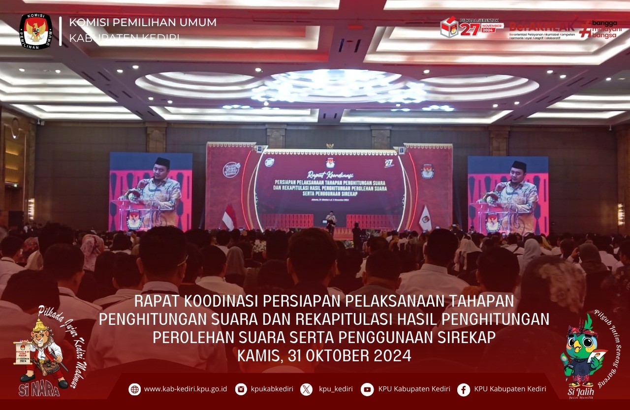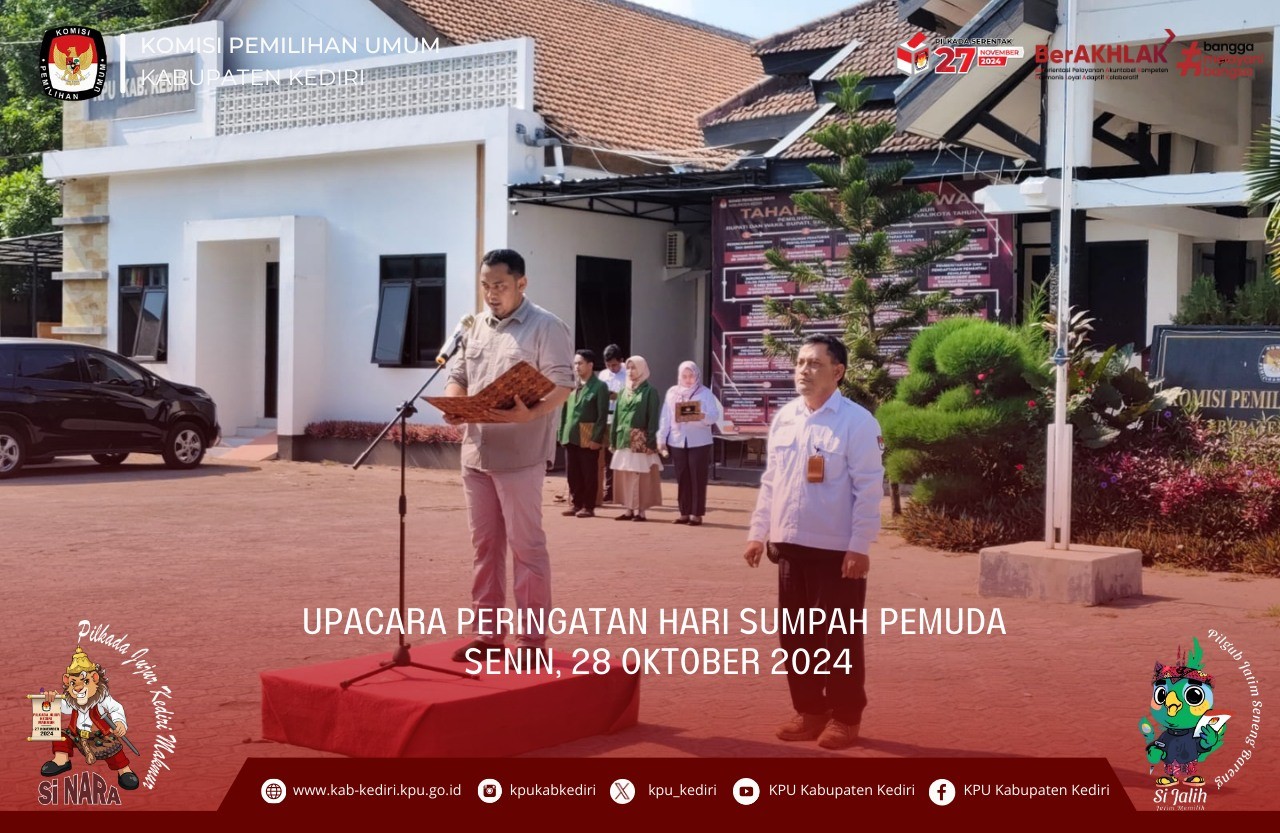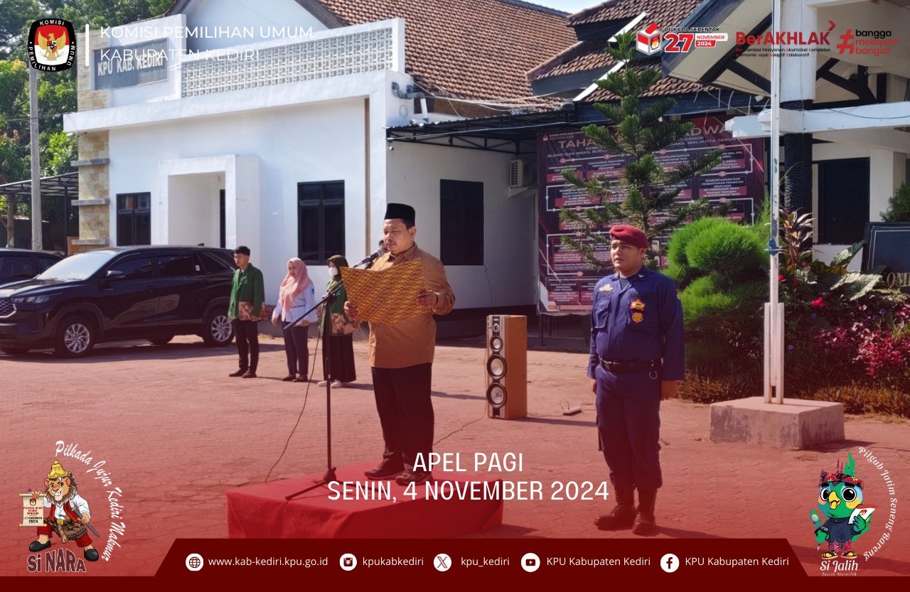 Kediri, kab-kediri.kpu.go.id - Senin (4/11), KPU Kabupaten Kediri menggelar Apel Pagi rutin setiap hari Senin yang diikuti oleh seluruh jajaran sekretariat KPU Kabupaten Kediri. Berlangsung mulai pukul 08.00 WIB sampai dengan selesai. Sesuai dengan teks susunan apel berjalan dengan lancar. Diawali dengan laporan kepada pembina apel dan dilanjut dengan penghormatan kepada bendera merah putih, kemudian mengheningkan cipta untuk mengenang jasa-jasa pahlawan bangsa Indonesia. Bertindak sebagai pembina Apel, Moh. Dziyaudin, selaku Divisi Hukm dan Pengawasan KPU Kabupaten Kediri , dalamamanatnya beliau menyampaikan bahwa pelaksanaan Pilkada serentak 2024 sekitar tiga minggu lagi. Maka dari itu sudah saat nya untuk meningkatkan kerjasama dan kesolidan dalam setiap pelaksanaan tahapan. "Pilkada serentak kuang 3 minggu lagi saya berharap seluruh jajaran KPU Kabupaten Kediri dapat melebur ego pribadinya untuk dapat bekerja bersama dalam mensukseskan Pilkada serentak 2024," ujar Dziya. Dizya juga mengingatkan, bahwa posisi KPU sebagai penyelenggara maka harus bersikap netral. Terlebih lagi untuk kawan-kawan ASN, selain sebagai penyelenggara juga sudah dijelaskan dalam aturan bahwa ASN harus netral dan menjaga integritasnya. "Kami juga menghimbau sebagai penyelenggara, kita diwajibkan untuk senantiasa bersikap netral kepada peserta pemilihan, terlebih lagi kepada kawan-kawan ASN, "tegas Dziya. Sebagai penutup amanat apel pagi ini Dziya berpesan untuk senantiasa menjaga kesehatan, mengingat waktu pemungutan suara sudah semakin dekat dan pastinya kegiatan juga akan semakin padat. "Terakhir saya berpesan untuk menjaga kesehatan kawan-kawan sekalian, semakin dekat pemungutan suara kegiatan juga akan semakin padat. Saya berharap kawan-kawan tetap sehat selalu hingga akhir masa pilkada tahun 2024,"tutup Dziya.
