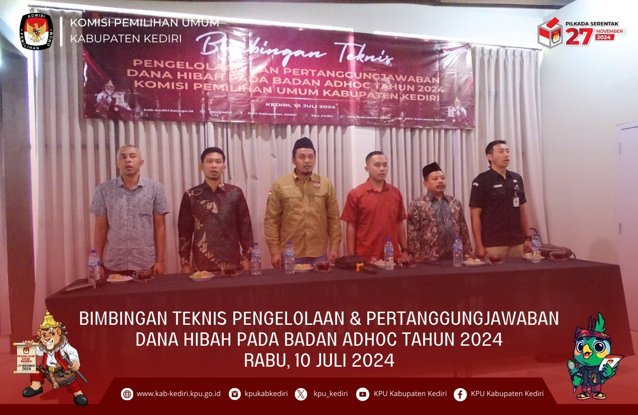 Kediri, kab-kediri.kpu.go.id - Rabu (10/7), KPU Kabupaten Kediri menggelar Bimbingan Teknis Pengelolaan dan Pertanggungjawaban Dana Hibah pada Badan Adhoc Tahun 2024. Bertempat di Amaze Hotel Kediri Lt. 4 acara dimulai tepat pukul 10.00 WIB. Hadir dalam acara tersebut Ketua KPU Kabupaten Kediri Nanang Qosim, Divisi Sosdiklih Parmas dan SDM Eka Septiawan Ferydyanto, Divisi Teknis Penyelenggaraan Irbabul Lubab, Divisi Perencanaan Data dan Informasi Moh. Isnaini, Divisi Hukum dan Pengawasan Moh. Dziyaudin dan Sekretaris Randy Agatha Sakaira serta PPK PIC Keuangan Umum dan Logistik bersama Sekretaris dan Bendahara PPK se-Kabupaten Kediri. Acara dibuka oleh Ketua KPU Kabupaten Kediri Nanang Qosim, beliau menyampaikan bahwa acara ini sangat penting diselenggrakan. Meskipun sudah terbiasa membuat laporan pertanggungjawaban, pada Pilkada ini ada yang berbeda yaitu anggaran nya memiliki 2 sumber yaitu dari Hibah Provinsi dan Hibah Kabupaten. "Saya harap kawan-kawan memperhatikan materi pada hari ini karena pada Pilkada saat ini ada 2 sumber anggaran, dan teman-teman harus bisa membedakan kegiatan yang dilaksanakan menggunakan anggaran mana,"terang Nanang. Randy Agatha Sekretaris KPU Kabupaten Kediri menambahkan bahwa honor dan BOP tiap bulan akan diberikan jika pelaporan SPJ dan Laporan kinerja telah diserahkan ke KPU, sehingga diharapkan untuk dapat tertib dalam pelaporan SPJ maupun pelaporan kinerja. "Saya hanya akan menambahkan sedikit, seperti sebelumnya honor dan BOP akan diberikan jika SPJ dan laporan kinerja bulan sebelumnya sudah diserakan pada kami dan sudah sesuai," ucap Randy. Acara dilanjutkan dengan pemaparan materi dari staff keuangan terkait pembukuan bendahara yang bersangkutan untuk pembuatan SPJ.(and)
