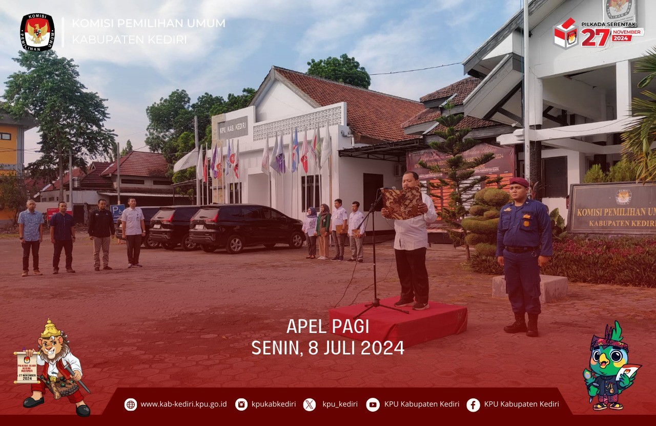 Kediri, kab-kediri.kpu.go.id - Senin (8/7), KPU Kabupaten Kediri menggelar Apel Pagi yang diikuti oleh Komisioner dan seluruh jajaran sekretariat KPU Kabupaten Kediri. Berlangsung mulai pukul 08.00 WIB sampai dengan selesai. Sesuai dengan teks susunan apel berjalan dengan lancar. Diawali dengan laporan kepada pembina apel dan dilanjut dengan penghormatan kepada bendera merah putih, kemudian mengheningkan cipta untuk mengenang jasa-jasa pahlawan bangsa Indonesia. Bertindak sebagai pembina Apel, Moh. Dziyaudin, selaku Anggota Divisi Hukum dan Pengawasan KPU Kabupaten Kediri menyampaikan untuk selalu meningkatkan rasa syukur, dengan rasa syukur akan menumbuhkan rasa iklhas sehingga pekerjaan akan semakin ringan untuk dikerjakan. "Rasa syukur bukan hanya untuk nikmat harta saja, banyak nikmat yang patut kita syukuri salah satunya nikmat sehat seperti saat ini sehingga kita dapat melaksanakan tugas sebagai penyelenggara dengan baik," ujar Dziya. Sebagai penutup amanat apel pagi kali ini Dziya juga menghimbau untuk meningkatkan kerjasama dan kesolidan seluruh jajaran KPU Kabupaten Kediri. Tahapan semakin padat dan beririsan dengan kerjasama yang baik tentunya akan meringankan pekerjaan juga. "Untuk yang terakhir saya menghimbau untuk tetap menjalin kerjasama dan meningkatkan kesolidan demi suksesnya Pilkada serentak Tahun 2024 ini," tutup Dziya.(and)