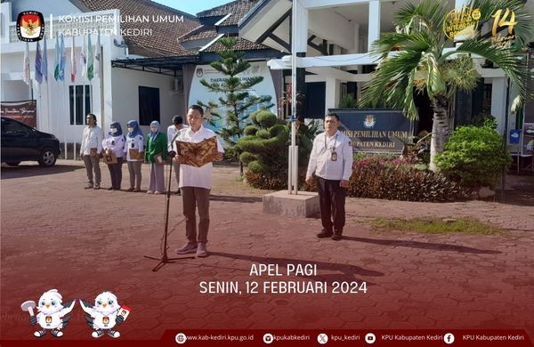 Kediri, kab-kediri.kpu.go.id - Senin (12/2), apel pagi di halaman kantor KPU Kabupaten Kediri yang diikuti oleh Pejabat Struktural, Staf, Jagat Saksana, dan mahasiswa magang. Berlangsung mulai pukul 08.00 WIB sampai dengan selesai. Sesuai dengan teks susunan apel berjalan dengan lancar. Diawali dengan laporan kepada pembina apel dan dilanjut dengan penghormatan kepada bendera merah putih, kemudian mengheningkan cipta untuk mengenang jasa-jasa pahlawan bangsa Indonesia. Bertindak selaku pembina Apel, Agus Hariono, selaku Anggota Divisi Hukum dan Pengawasan menyampaikan bahwa tinggal 2 hari lagi menuju puncak Pemilu 2024. Yang harus diingat bahwa setiap divisi dan subbag harus bisa berkolaborasi dengan baik agar padatnya jadwal dan kegiatan dapat dilakukan dengan baik. "Saya berharap masing-masing divisi dan subbag dapat berkolaborasi dengan baik bukan malah mengkotakan diri untuk bekerjasama melaksanakan tahapan dan kegiatan yang sudah semakin dekat ini," ujar Agus. Di akhir amannatnya Agus tidak lupa mengingatkan kepada seluruh keluarga besar KPU Kabupaten Kediri untuk menjaga kesehatan baik fisik maupun mental. Dengan padatnya tahapan dan semakin dekatnya hari pemungutan suara tetntunya fisik dan mental terus terkuras. "Jika memang tidak dibutuhkan untuk bekerja lembur gunakan wktu itu untuk istirahat," ujar Agus.(and)