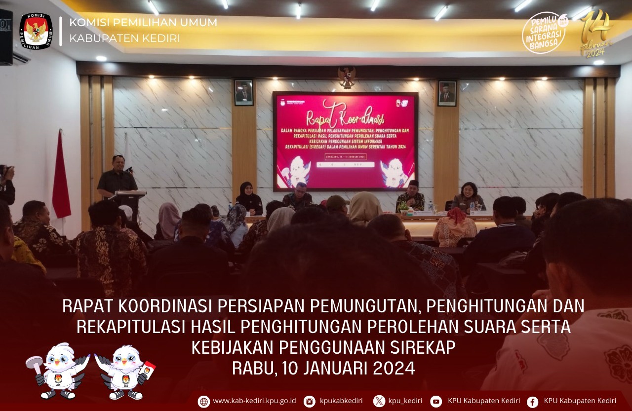 Kediri, kab-kediri.kpu.go.id - Rabu (10/1) KPU Kabupaten Kediri menghadiri Rapat KoordinasiPersiapan Pemungutan, Penghitungan dan Rekapitulasi Hasil Penghitungan Perolehan Suara serta Kebijakan Penggunaan Sirekap yang digelar KPU Provinsi Jatim. Bertempat di Kantor KPU Kabupaten Lumajang. Acara dimulai tepat pukul 15.00 WIB dan dijadwalkan berlangsung selama 2 hari (Rabu - Kamis, 10-11 Januari 2024). Turut hadir mewakili KPU Kabupaten Kediri yaitu Anggota Divisi Teknis Penyelenggaraan Anwar Ansori dan Kasubbag Tekmas Donny Hendrawan. Ketua KPU Provinsi Jatim, Choirul Anam dalam sambutannya menyampaikan nahwa saat ini KPU tengah menyusun juknis tungsura. Nantinya dalam pelaksanaan pungut hitung harus disesuaika dengan juknis tersebut agar setiap langakah tidak ada yang terlewat. "Jantung nya pemilu adalah teknis tanpa melemahkan divisi lain, harus memahami secara utuh regulasi tidak hanya regulasi tungsura," terang Anam. "Tidak hanya regulasi tungsura, kawan-kawan juga harus paham mengenai regulas daftar pemilih utnuk bisa mengategorikan pemilih dan juga regulasi logistik untuk dapat mengkroscek kelengkappan dalam pelaksanaan tungsura," imbuhnya Acara dilanjutkan dengan pengarahan dari Insan Qoriawan Anggota Divisi Teknis Penyelenggaraan Pemilu KPU Provisnsi Jawa Timur. Beliau menyampaikan bahwa C Hasil Plano adalah mahkota dari Pemilu jadi harus dijaga kebenaran dan keabsahaanya. Selain itu C Hasil Plano juga sebagai dasar dalam penggunaan SIREKAP yang nantinya akan di captured dan diunggah. "C Hasil Plano harus menjadi perhatian khusus, selain sebagai mahkota pemilu juga sebagai dasar penggunaan SIREKAP. Maka dari itu harus di perhatikan pengisian nya," terang Insan. Teman-teman KPU Kabupaten/Kota sesuai instruksi KPU RI untuk mengadakan simulasi riil, dengan jumlah DPT di TPS itu, menghitung berapa lama proses dan berapa lama mengaplikasikan Sirekap," tutup Insan.(don)
