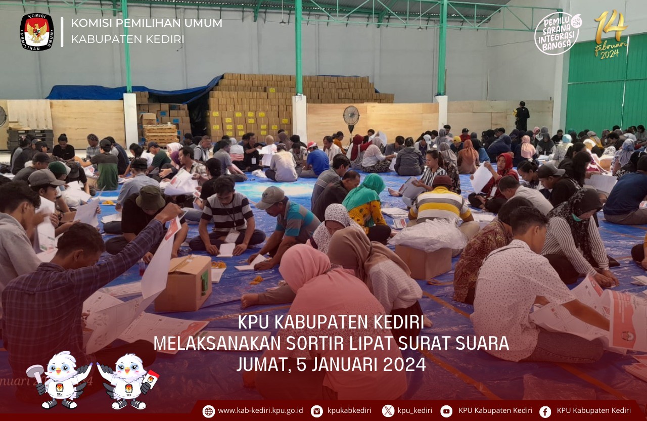 Hadir dalam kegiatan tersebut Ketua KPU Kabupaten Kediri Ninik Sunarmi, Sekretaris Randy Agatha Sakaira, dan Kasubbag Keuangan Umum dan Logistik Winarto. Dalam sambutannya Ninik menyampaikan kepada seluruh pekerja untuk melakukan sortir surat suara dengan teliti dan melakukan pelipatan secara rapi.