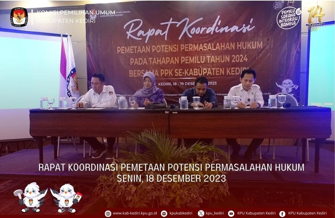 Kediri, kab-kediri.kpu.go.id – Senin (18/12/2023) KPU Kabupaten Kediri mengikuti Rapat Pimpinan Evaluasi Tahapan Pemilu 2024 Tahun Anggaran 2023 dan Persiapan Pilkada Tahun 2024. Berlangsung di Bandungan, Jawa Tengah, hadir memberikan pengarahan Anggota KPU RI Yulianto Sudrajat. Drajat membagikan tiga poin utama kepada peserta, yakni penguatan kelembagaan dan peningkatan kapasitas SDM, kebijakan serta strategi pengelolaan logistik pemilu, dan persiapan Pilkada Serentak tahun 2024. Ia juga menekankan bahwa penyelenggara pemilu, yang terdiri dari KPU, Bawaslu, dan DKPP, merupakan satu kesatuan fungsi. KPU, sebagai lembaga penyelenggara pemilu dengan cakupan nasional yang tetap dan mandiri, diharapkan menjalankan tugasnya secara berkesinambungan. “Pembagian divisi dan pembagian koordinator wilayah bukan merupakan sekat, tetapi untuk efektivitas dan sinergitas kerja sekretaris jenderal KPU, sekretaris KPU provinsi, dan sekretaris KPU kabupaten/kota wajib memberikan fasilitasi dan dukungan teknis dan administrative,” kata Drajat. Drajat menyoroti bahwa KPU bertanggung jawab memberikan kebijakan umum untuk membentuk SDM penyelenggara pemilu yang loyal, berintegritas, profesional, mental kuat, dan solid. Hal ini bertujuan untuk menjadikan KPU sebagai lembaga yang berkinerja baik, akuntabel, dan dipercaya oleh masyarakat. “Dalam pengelolaan keuangan harus mempertahankan status WTP, menjadikan lembaga KPU sebagai lembaga pelayanan demokrasi yang semakin berkualitas (terutama dalam pelayanan kepada pemilih dan peserta pemilu),” tambah Drajat. Selanjutnya, Drajat mencatat adanya enam tantangan dalam pengelolaan logistik, termasuk lama waktu pengadaan dan distribusi, keterbatasan gudang penyimpanan, letak geografis, moda transportasi, kondisi alam, dan penggunaan teknologi informasi. Ia mengajak peserta untuk mematuhi prinsip tata kelola logistik yang baik, khususnya dalam penggunaan Dana Hibah Pilkada di Jawa Tengah yang sepenuhnya dialokasikan untuk NPHD. (pnj)