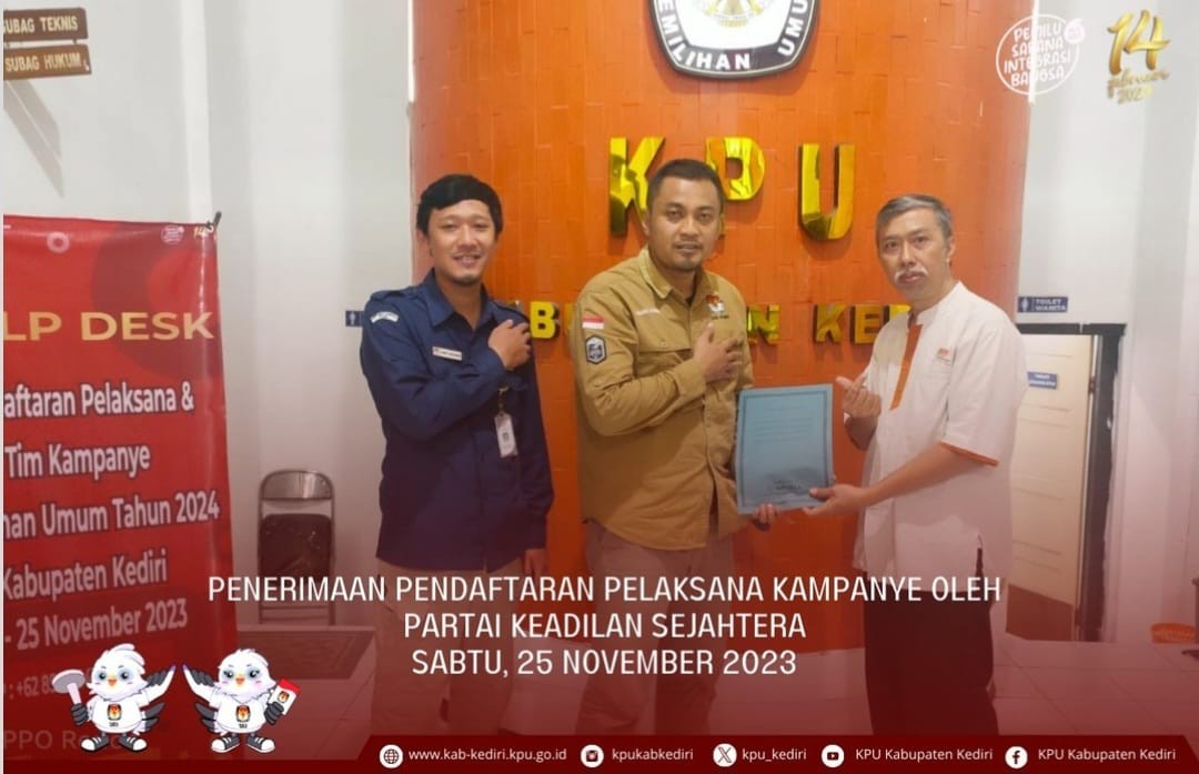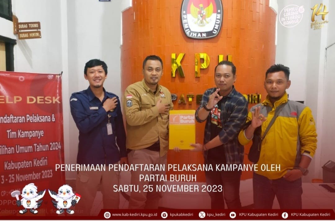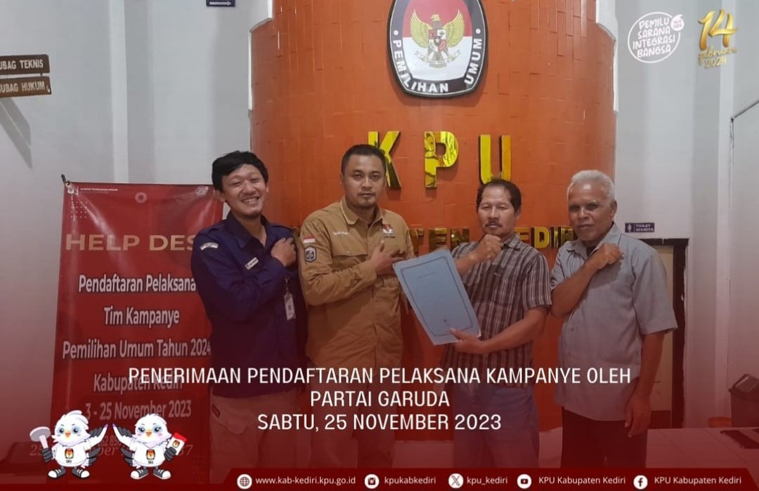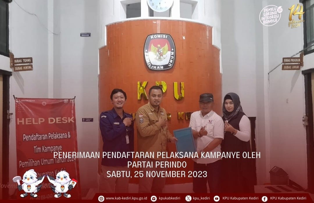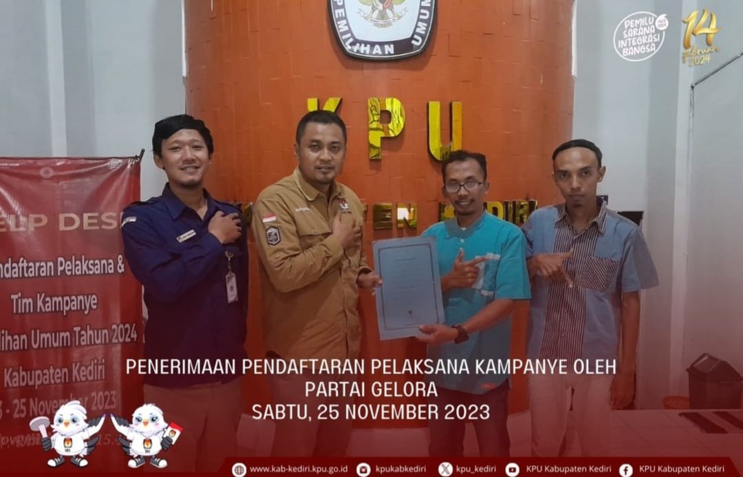 Kediri, kab-kediri.kpu.go.id – Sabtu (25/11) Partai Gelombang Rakyat Indonesia menyerahkan Pendaftaran Pelaksana Kampanye Pemilu DPRD Kabupaten Kediri ke Kantor KPU Kabupaten Kediri, Jl. Pamenang No.1, Ngasem, Kediri.