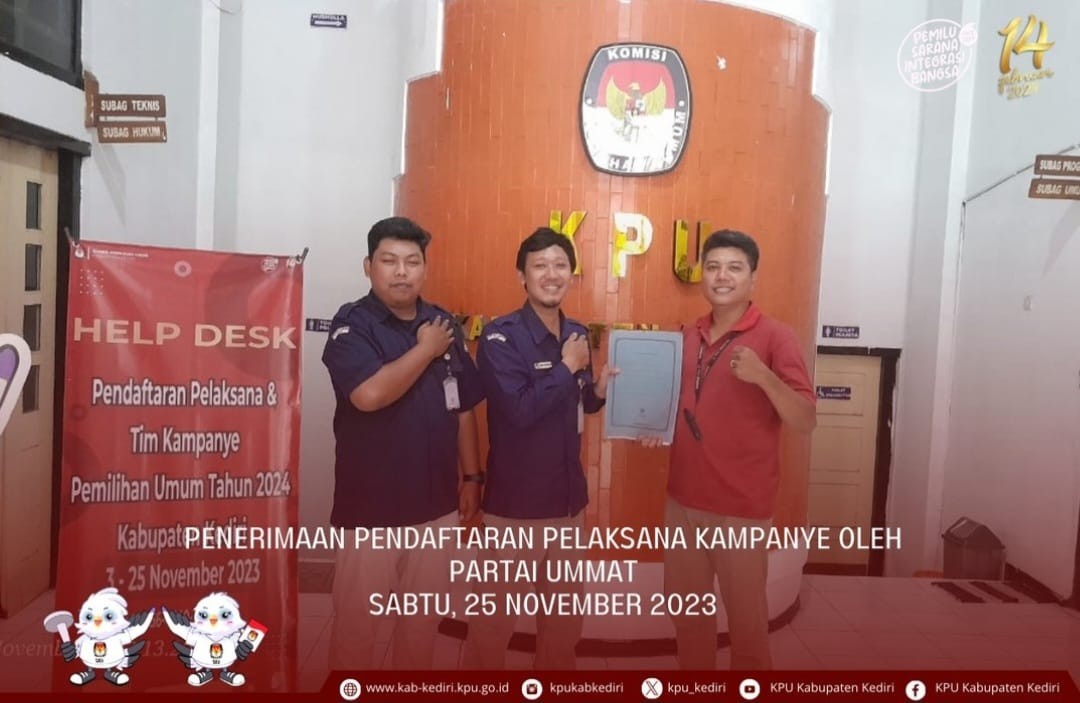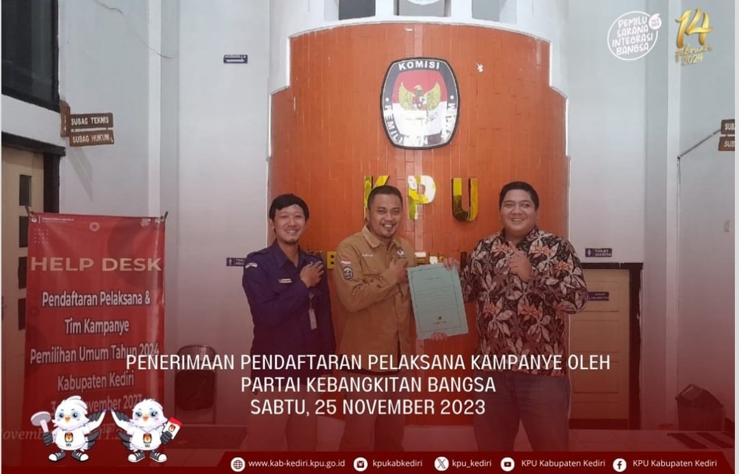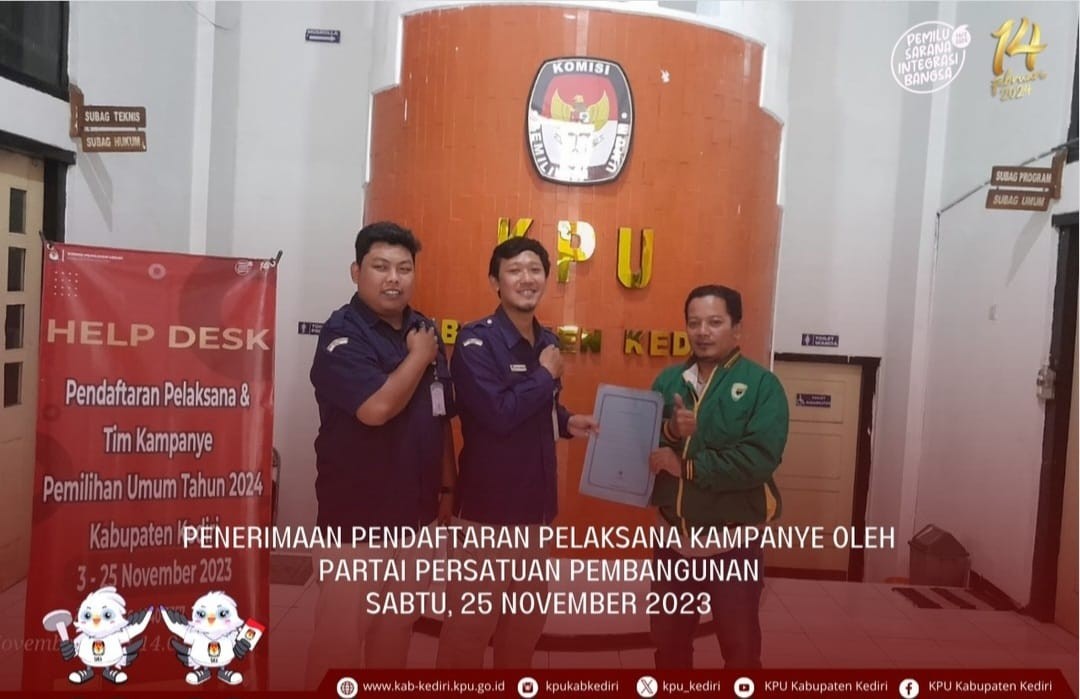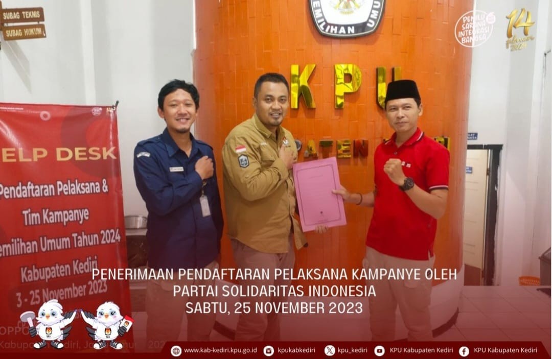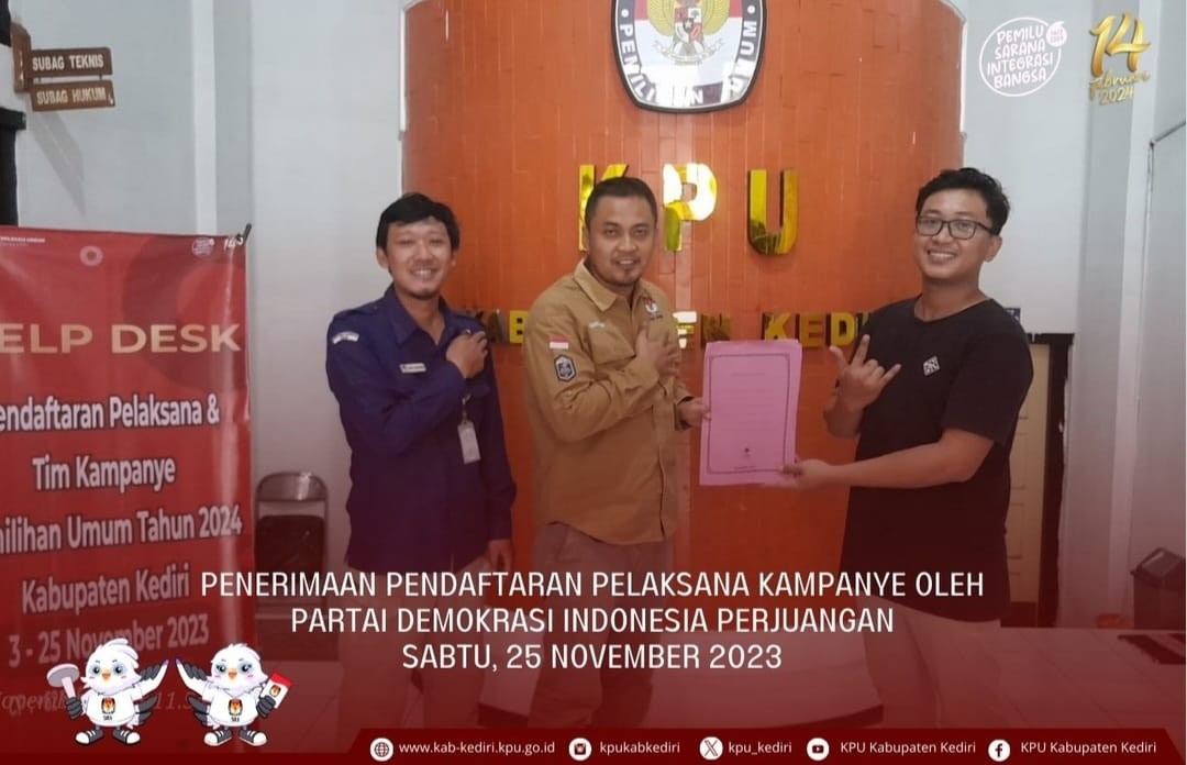 Kediri, kab-kediri.kpu.go.id – Sabtu (25/11) Partai Demokrasi Indonesia Perjuangan menyerahkan Pendaftaran Pelaksana Kampanye Pemilu DPRD Kabupaten Kediri ke Kantor KPU Kabupaten Kediri, Jl. Pamenang No.1, Ngasem, Kediri.