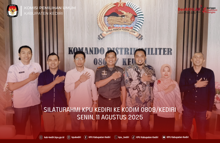 Kediri, kab-kediri.kpu.go.id - Senin (11/08), KPU Kabupaten Kediri melaksanakan kunjungan silaturahmi ke Markas Kodim 0809/Kediri. Rombongan KPU Kabupaten Kediri diwakili oleh Nanang Qosim selaku Ketua KPU, Moh. Isnaini (Divisi Perencanaan, Data, dan Informasi), Eka Septiawan Ferydyanto (Divisi Sosialisasi, Pendidikan Pemilih, SDM, dan Partisipasi Masyarakat), Irbabul Lubab (Divisi Teknis Penyelenggaraan), Ninik Sunarmi (Divisi Hukum dan Pengawasan), serta Sekretaris KPU Kabupaten Kediri Randy Agatha Sakaira. Kegiatan ini disambut hangat oleh Komandan Kodim 0809/Kediri Letkol Inf Ragil Jaka Utama bersama jajaran perwira staf. Pertemuan tersebut menjadi ajang mempererat hubungan kelembagaan sekaligus menjaga sinergi antara KPU dan TNI di wilayah Kabupaten Kediri. Dalam kesempatan itu, Ketua KPU Kabupaten Kediri menyampaikan terima kasih atas sambutan yang diberikan serta kerja sama yang telah terjalin baik selama ini. Menurutnya, komunikasi dan koordinasi dengan berbagai pihak, termasuk TNI, sangat penting untuk mendukung tugas-tugas kelembagaan KPU. Ia berharap silaturahmi ini dapat menjadi langkah positif untuk terus membangun hubungan yang harmonis. Letkol Inf Ragil Jaka Utama menyampaikan apresiasi atas kunjungan KPU Kabupaten Kediri dan menegaskan bahwa Kodim 0809/Kediri selalu terbuka untuk bersinergi dalam berbagai bidang sesuai kewenangan yang dimiliki. Ia berharap hubungan baik yang telah terjalin dapat terus dipertahankan dan ditingkatkan demi terciptanya suasana kondusif di wilayah Kabupaten Kediri.(irf)