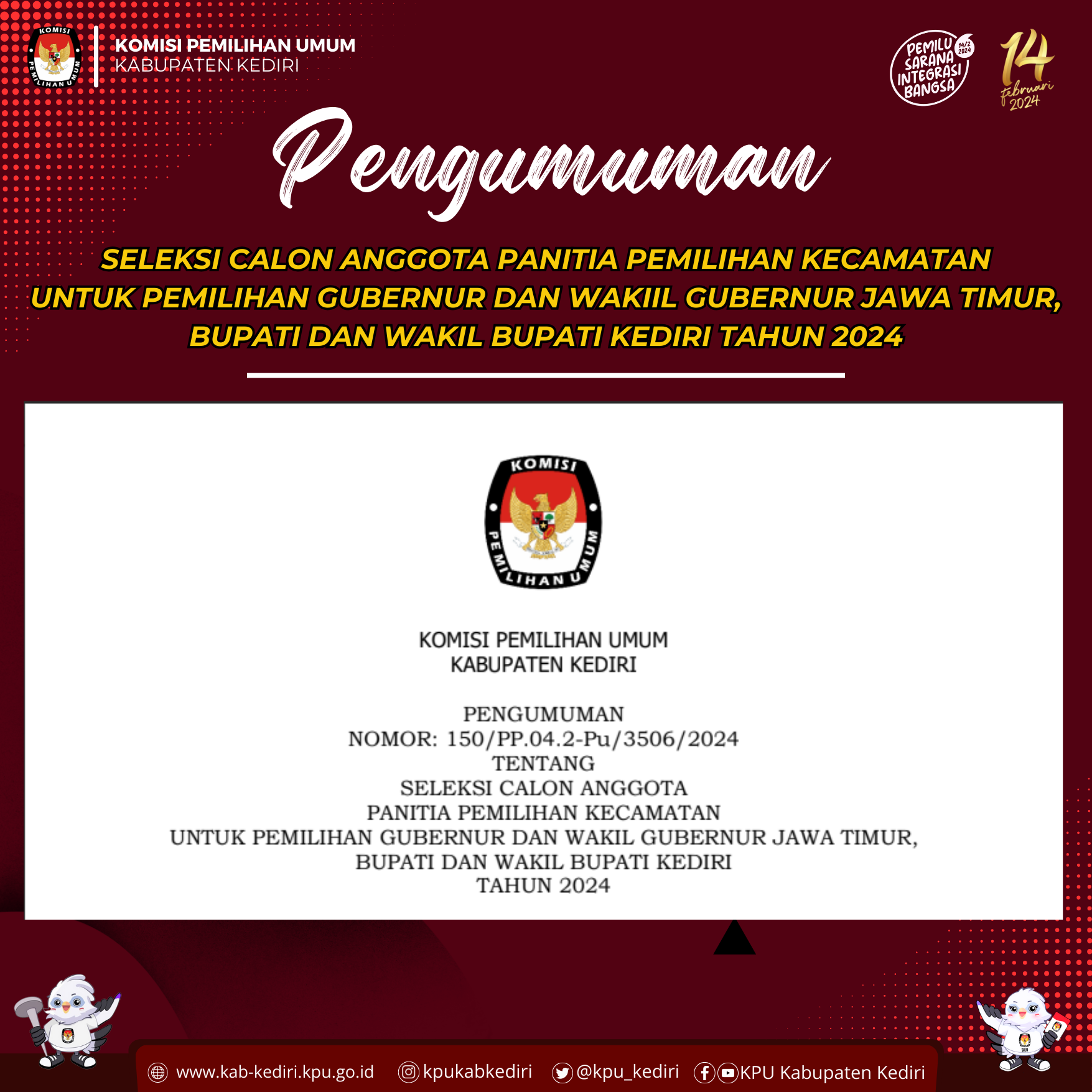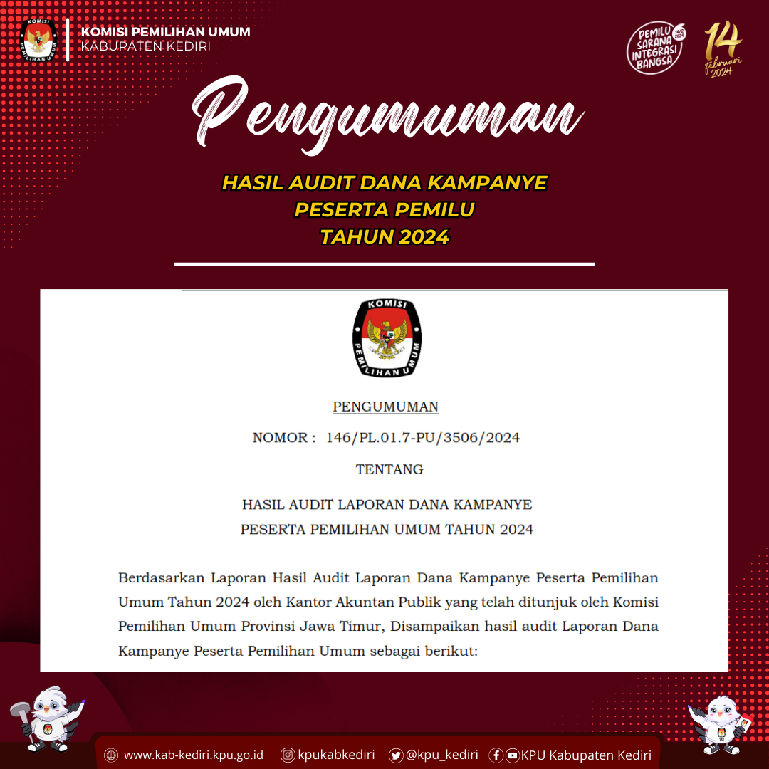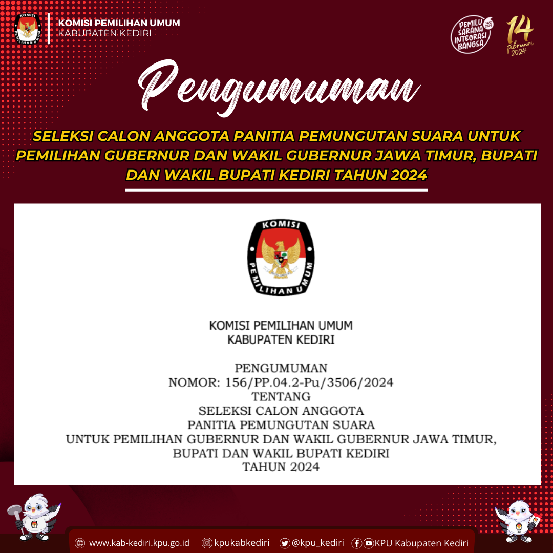 Berikut disampaikan Pengumuman Tentang Pendaftaran Bakal Calon Anggota KPU Kabupaten/Kota pada 36 Kabupaten/Kota di Jawa Timur Periode 2024-2029